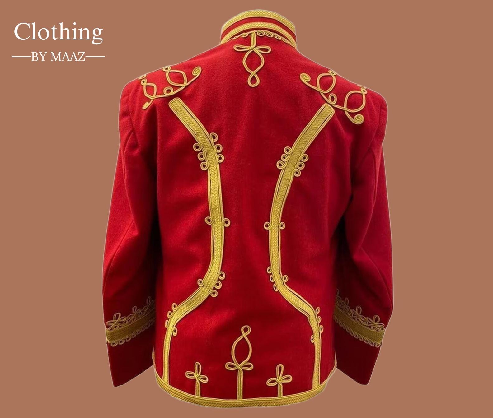 Men's Red Napoleonic Hussar Jacket| Pelisse Jimi Hendrix Jacket| Military Style Uniform Tunic| Clothing By Maaz