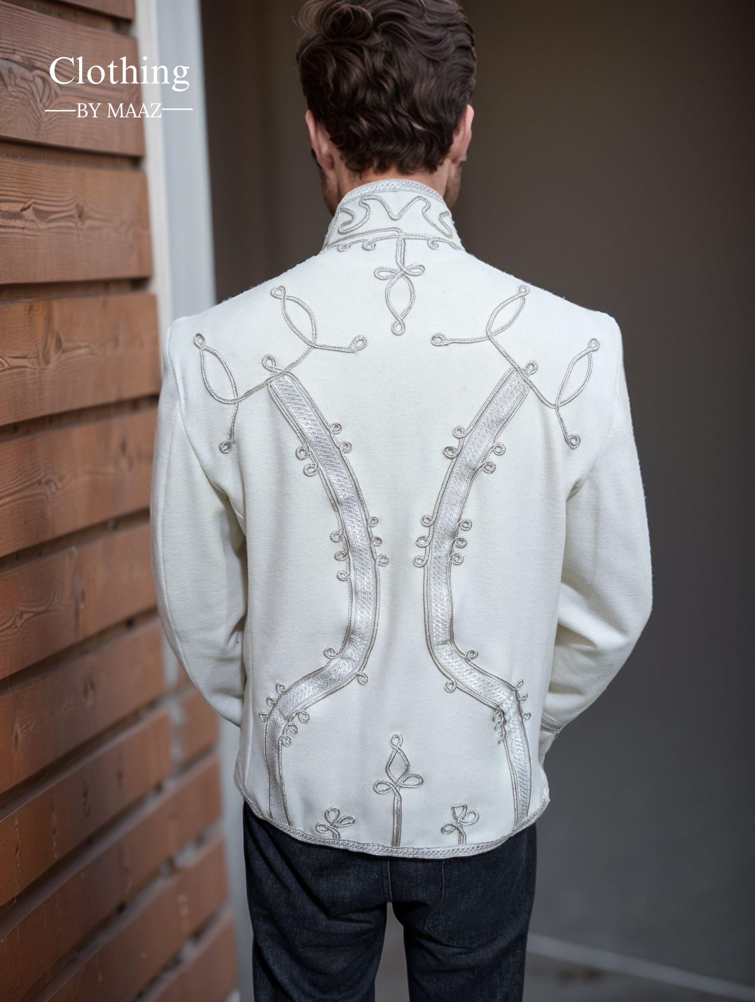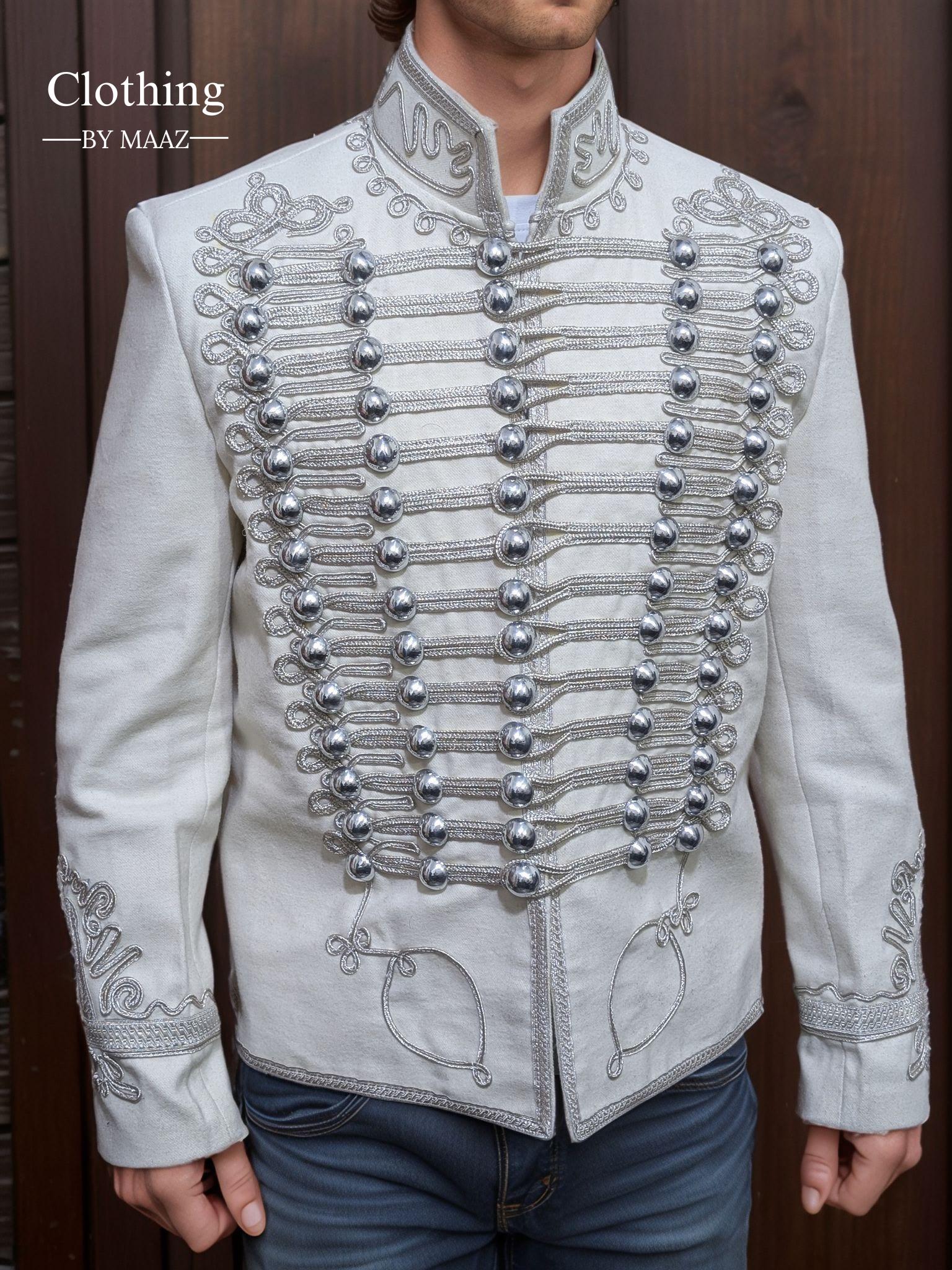 Men's Napoleonic White Hussar Jacket| Pelisse Jimi Hendrix Jacket| Military Style Uniform Tunic| Clothing By Maaz