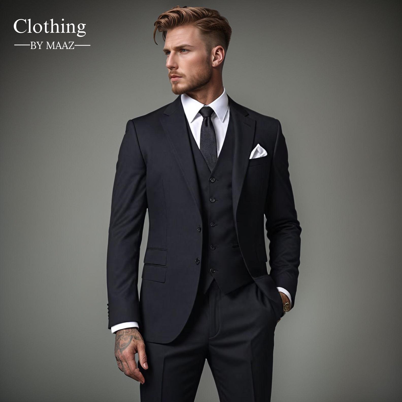 Tailor-made Men's Plain Black Suit| Formal Groom & Business Custom Suit| 3-Piece Wedding Suit| Clothing By Maaz