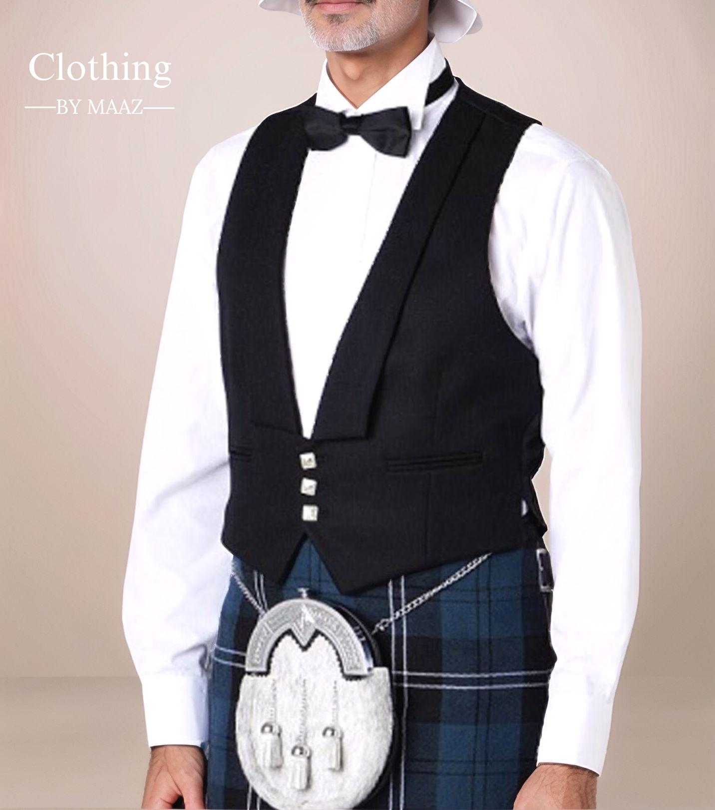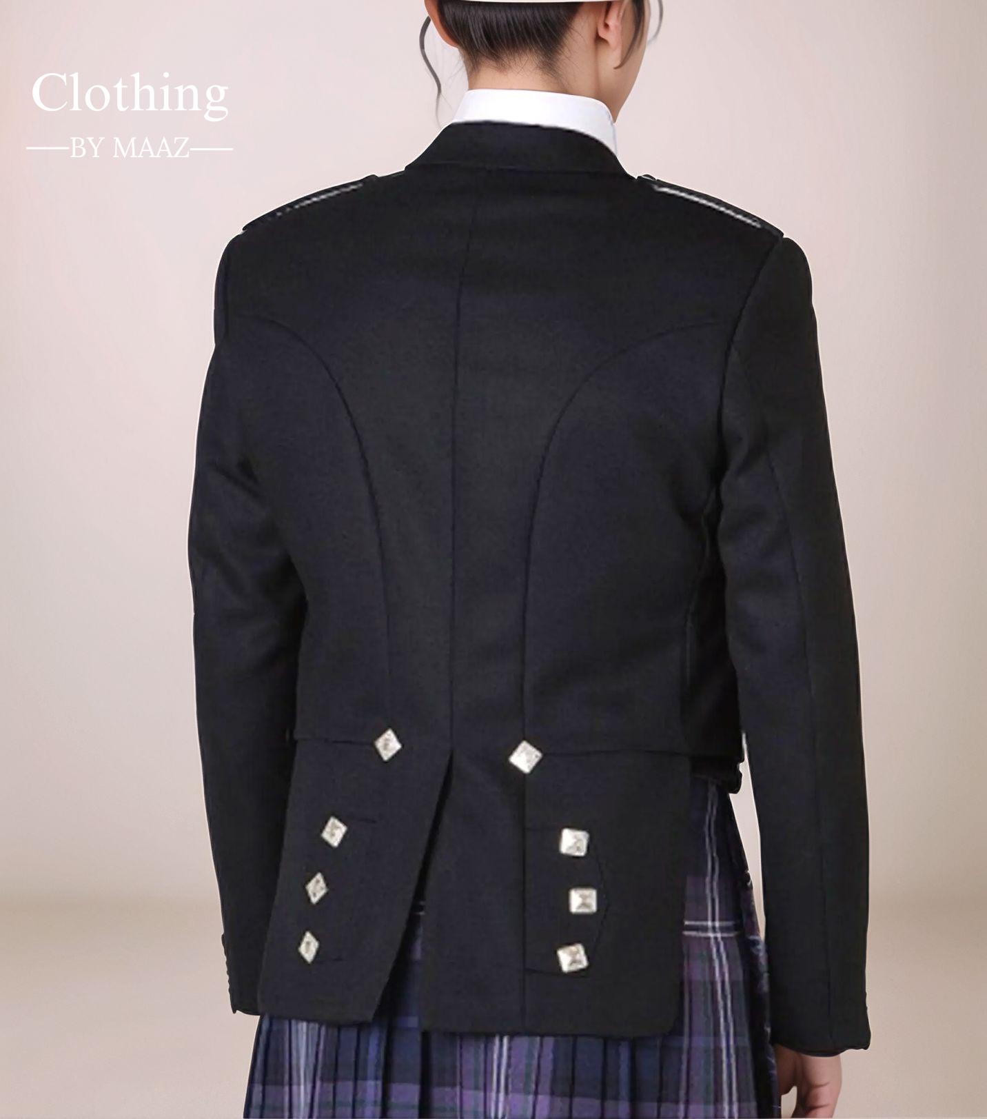 Matching Accessories: It is typically paired with a formal kilt, waistcoat (vest), and a bow tie or tie, completing the traditional Highland look.