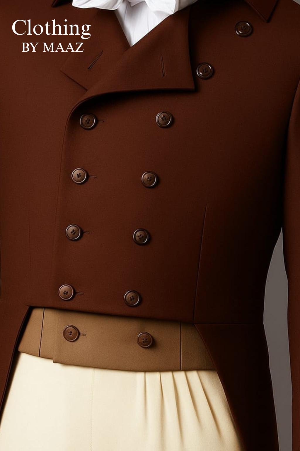 Handmade Brown Wool Regency Tailcoat, Mens Wool Coat , Regency Complete Outfit , CBM