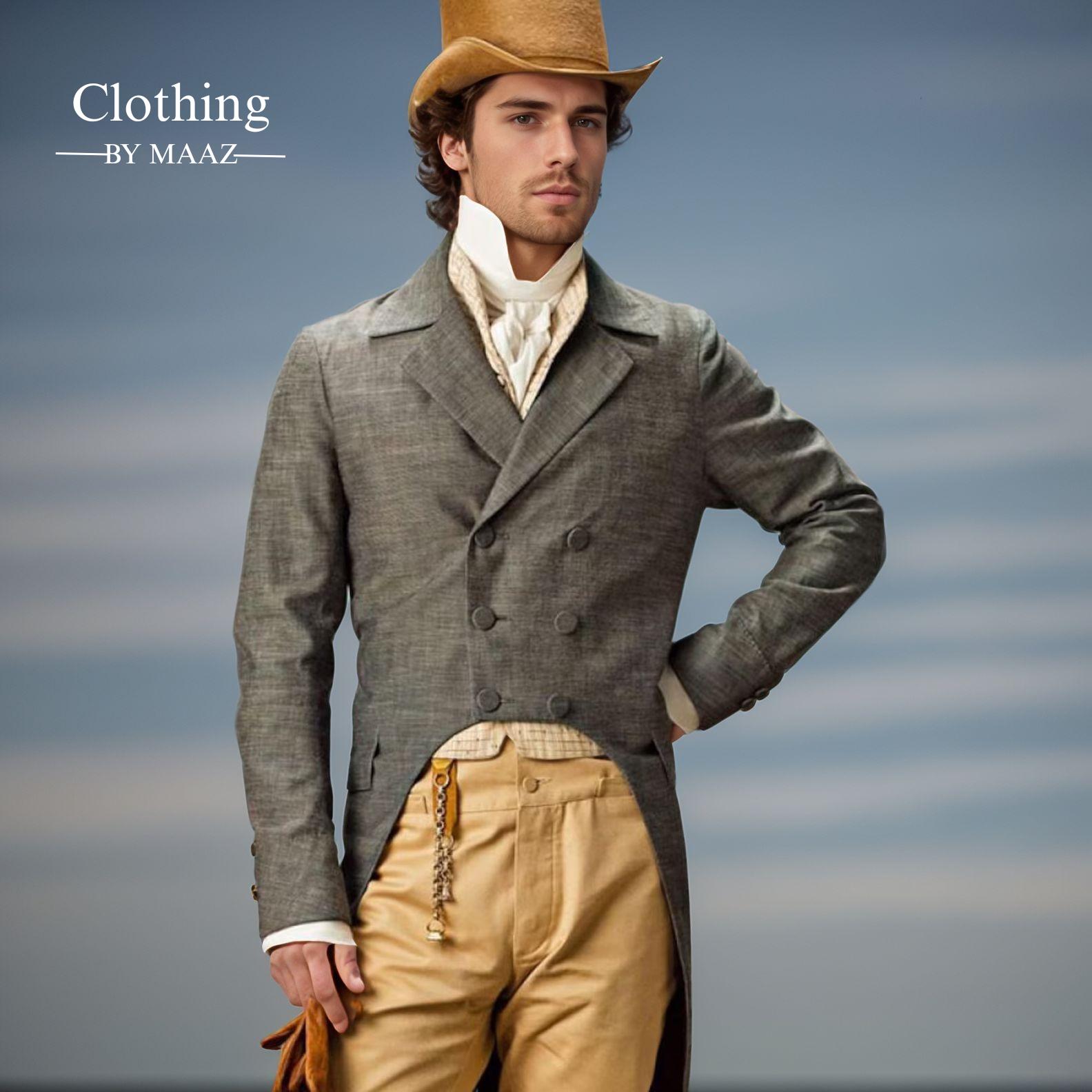 Men's Gray Long Wool Regency Tail Coat| Regency Vest Tailcoat| Men's Regency Complete Tailcoat| Clothing By Maaz