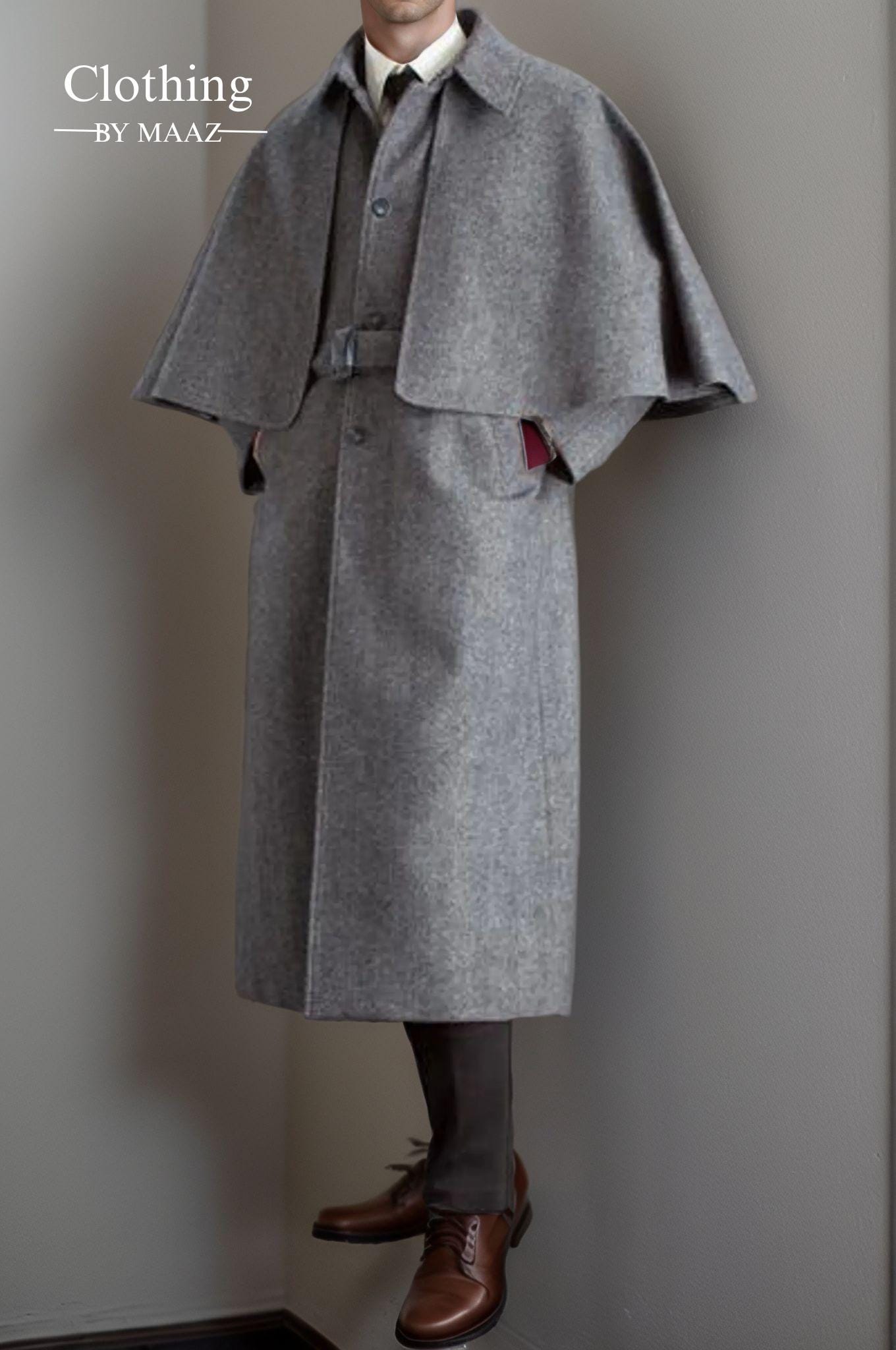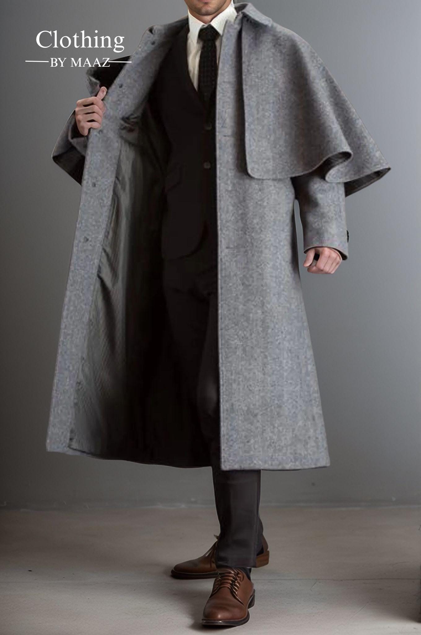 The Men's Long Gray Inverness Cape Coat is more than just a piece of outerwear—it’s a celebration of history, elegance, and individuality. Whether you’re embracing the holiday spirit, attending a special event, or simply elevating your winter wardrobe, this coat is sure to turn heads and keep you cozy in style.
