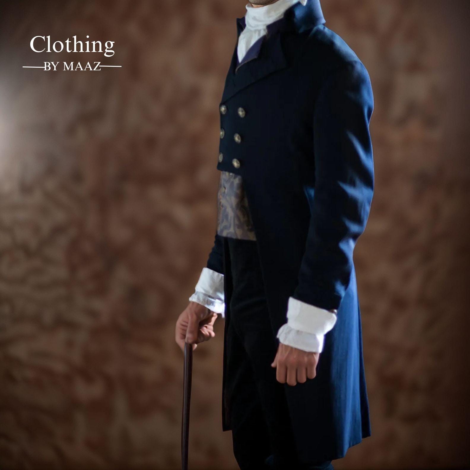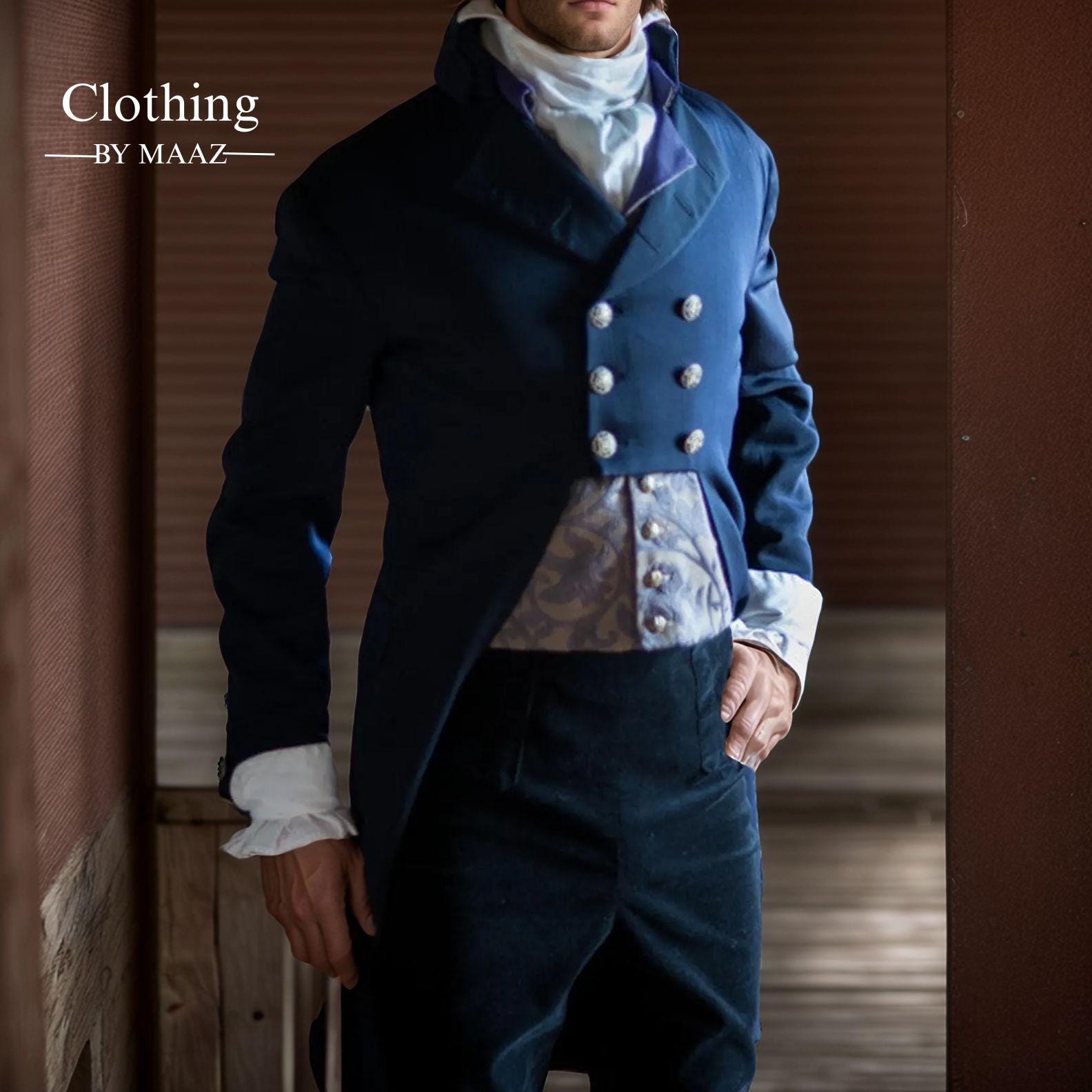 Handmade Blue Wool Tailcoats| Blue Wedding Tailcoat| Men's Regency Complete Outfit| Clothing By Maaz