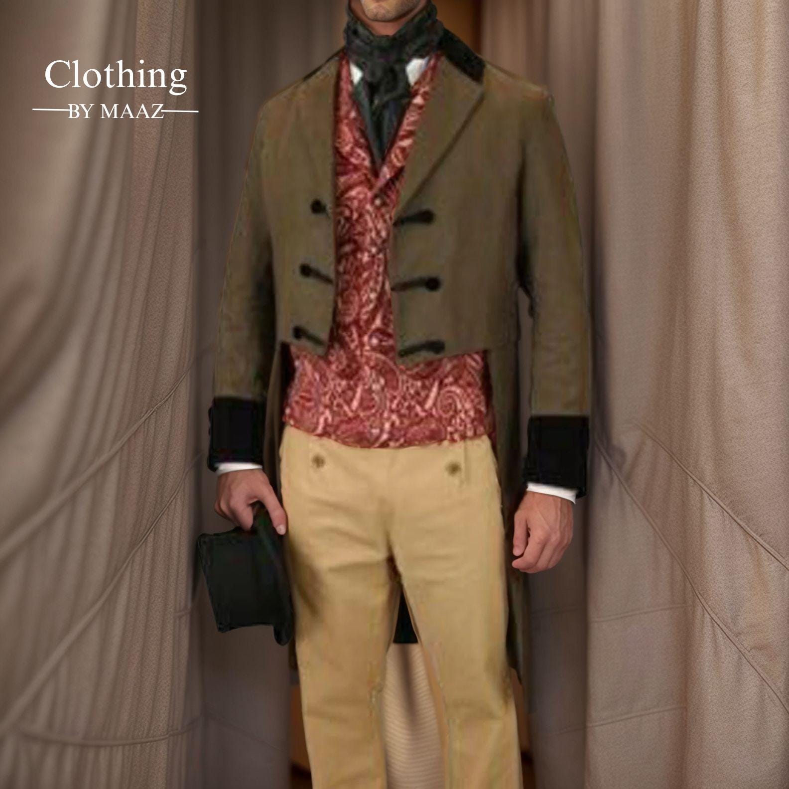 18th Century Men's Regency Brown wool tailcoat| Brown regency tailcoat| Brown wool tailcoat| Men's Regency Outfit