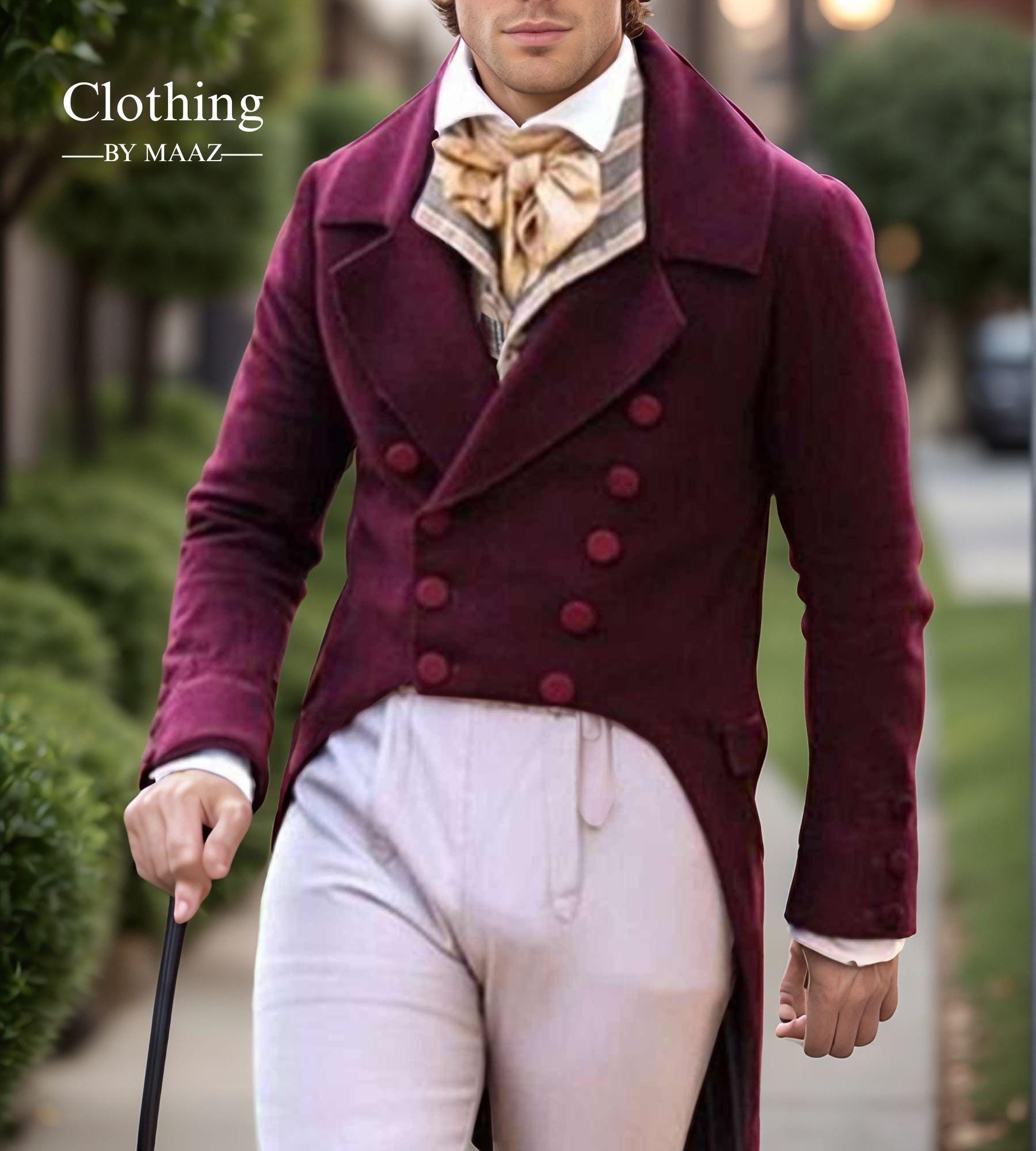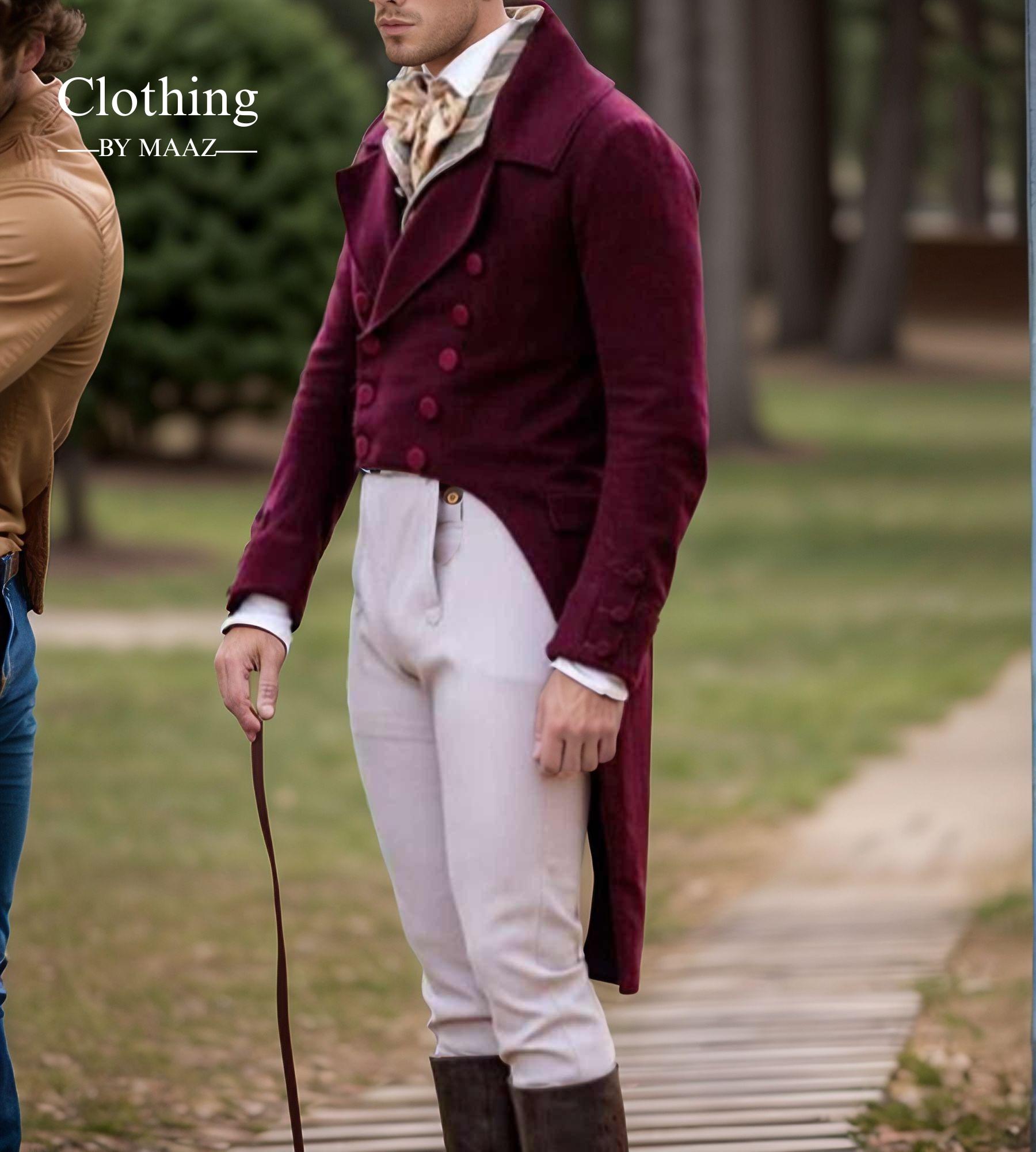 Men's Maroon Long Wool Regency Tail Coat| Regency Vest Tailcoat| Men's Regency Complete Tailcoat| Clothing By Maaz