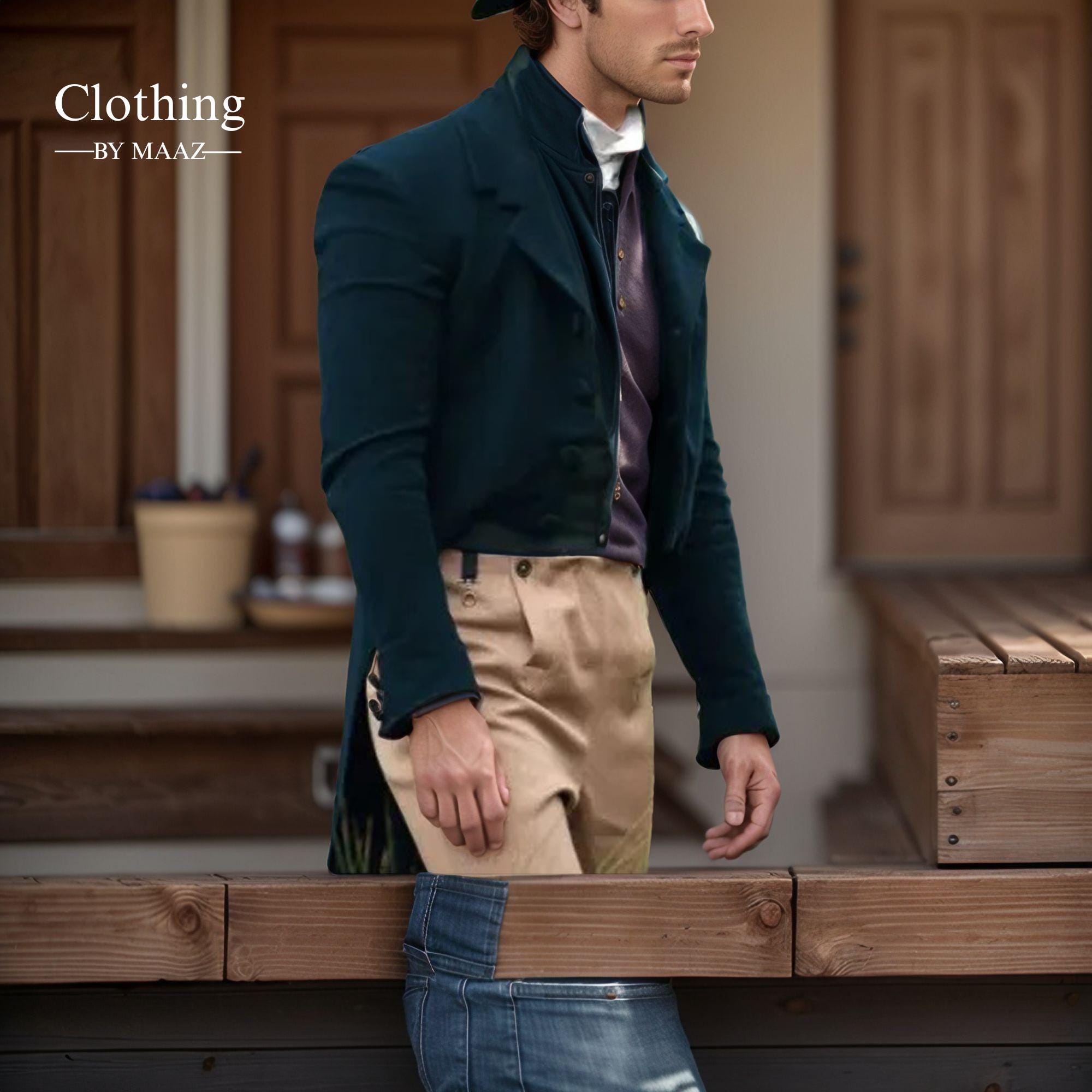 Handmade Green Long Wool Regency Tail Coat| Regency Vest Tailcoat| Men's Regency Complete Tailcoat| Clothing By Maaz