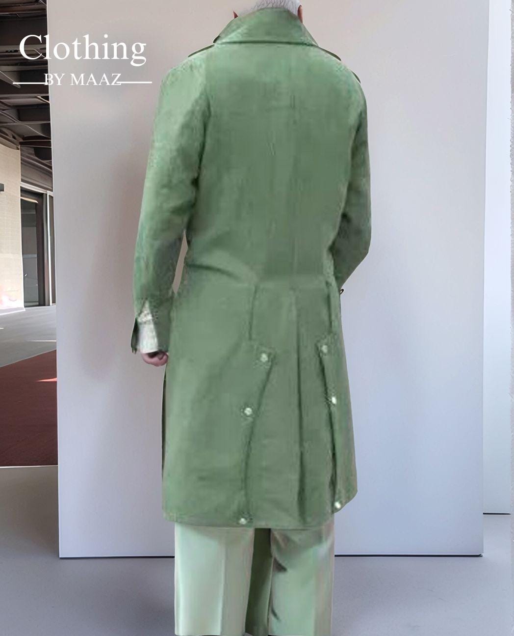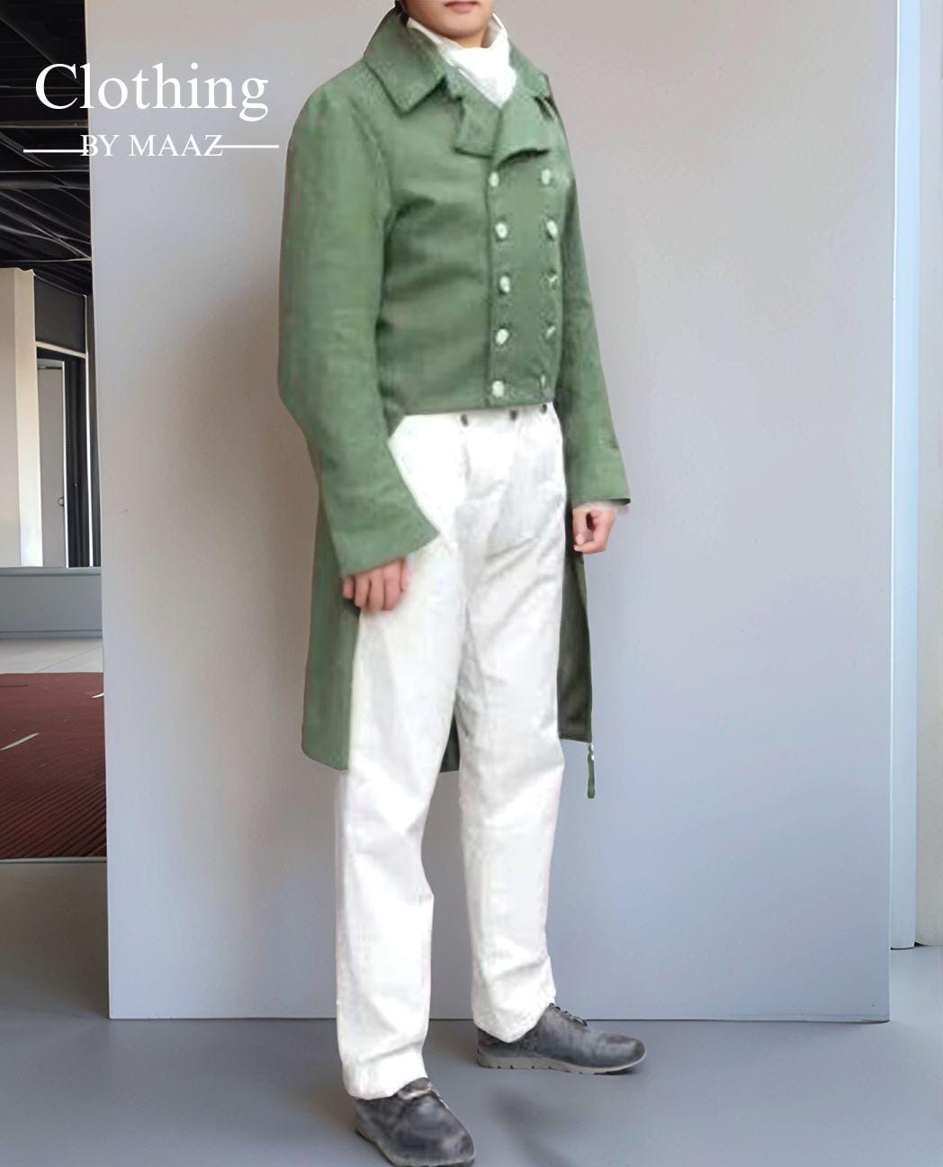 Handmade Men's Green Long Wool Regency Tail Coat| Regency Vest Tailcoat| Men's Regency Complete Tailcoat| Clothing By Maaz
