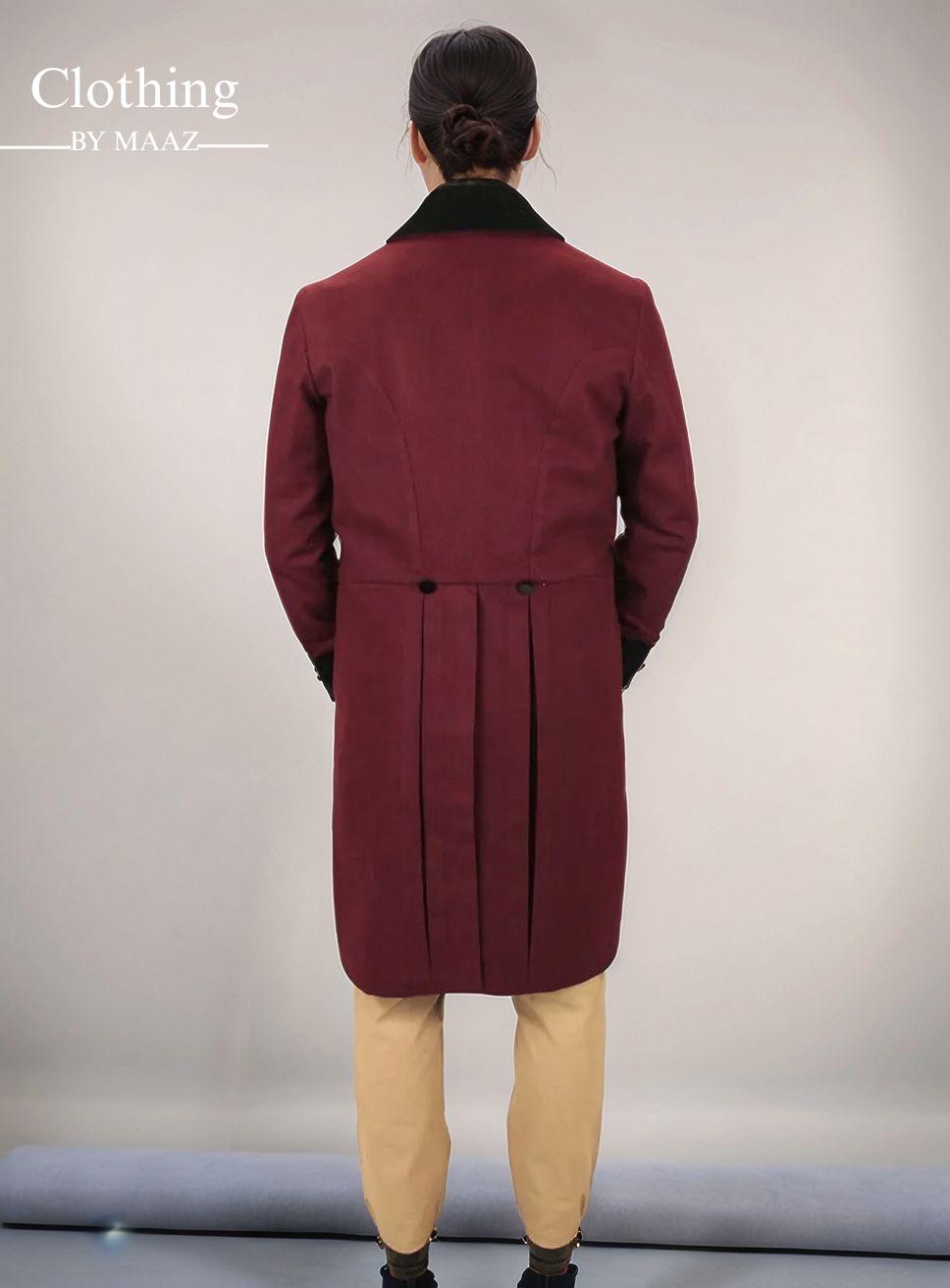 Handmade Men's Regency Tailcoat | Regency Burgundy Tailcoat | Men's Regency Outfit | 18th Century Regency Tailcoat | Clothing By Maaz