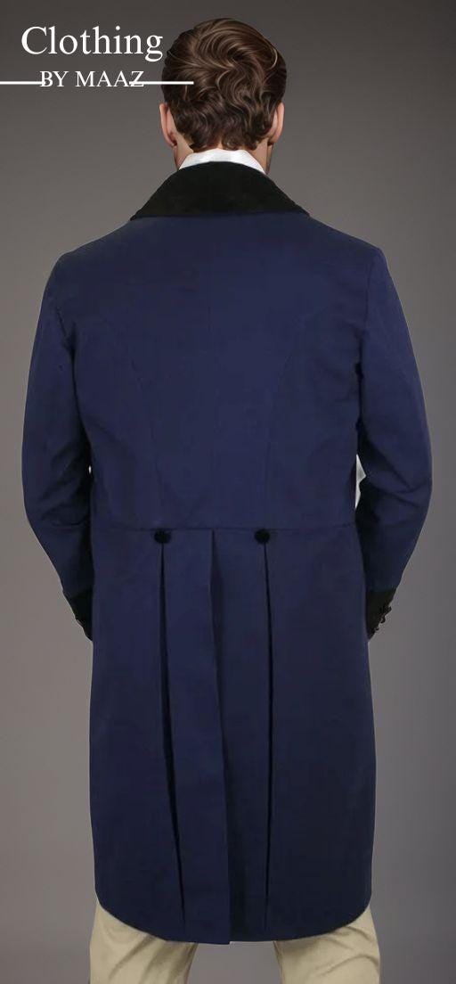 Handmade Men's Regency Tailcoat | Men Navy coat | Regency Tailcoat | 18th Century Regency Tailcoat | Clothing By Maaz