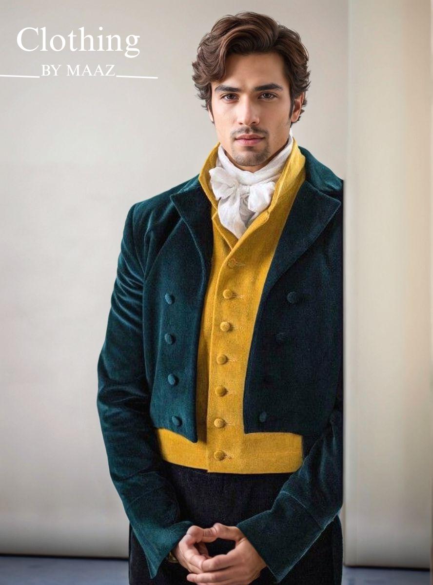 Custom Fit Style: Tailored to provide a sharp, flattering silhouette that enhances your appearance. The fit is designed to reflect the elegance of the Regency era.