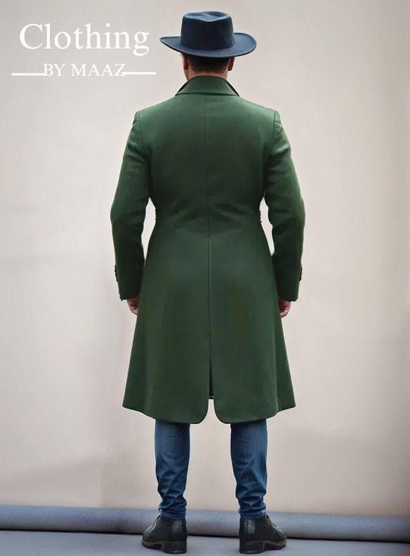 Handmade Men's Green Regency Wool Coat | Men's Regency Wool Coat | Men's Green Wool Coat | Clothing By Maaz