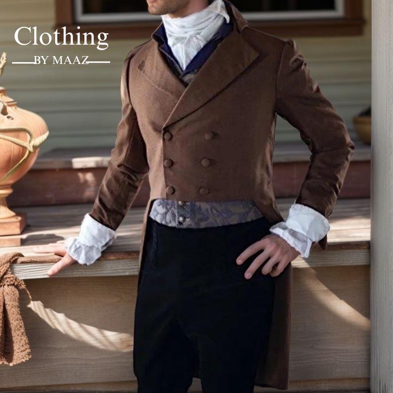 Handmade Men's Dark Brown Victorian Tailcoat| 18th Century Regency Tailcoat| Men's Regency Complete Tailcoat| Clothing By Maaz