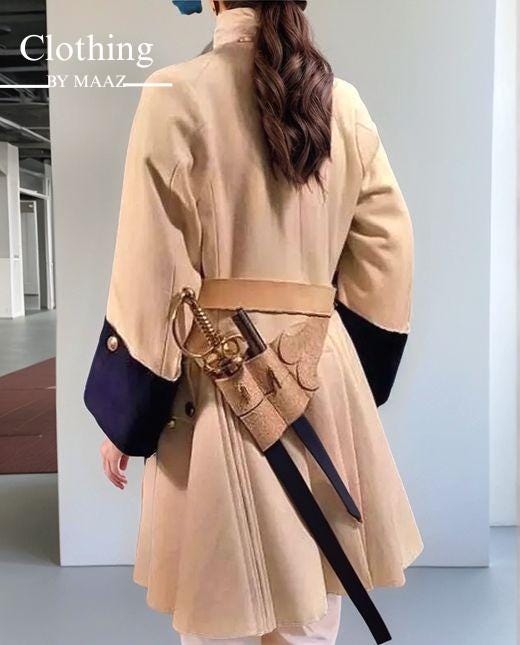 Handmade Men's New French Off White Frock Wool Coat | Men's Long Coat | Historically Inspired Coat | Clothing By Maaz