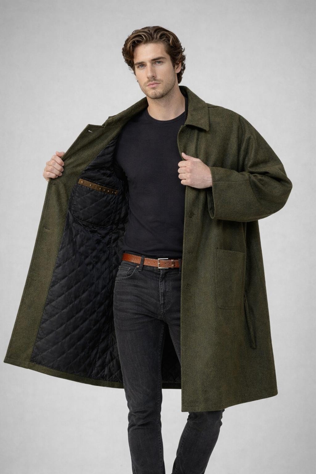 The Handmade Men's Victorian Long Green Loden Cape Coat. The Men's Victorian Long Green Loden Cape Coat is a timeless and versatile piece that effortlessly marries sophistication with practicality. Rooted in Victorian-era fashion, this coat is a modern interpretation of a classic design, making it a standout addition to any wardrobe.. This design not only adds a dramatic flair but also provides additional warmth and protection from the elements, making it both stylish and functional.
