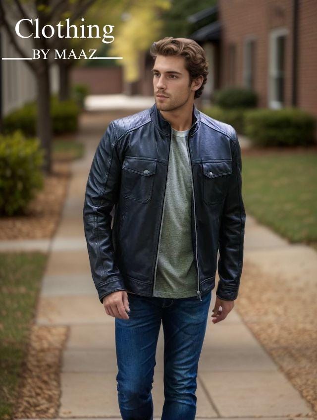 This jacket is good for daily wear, motorbike rides, or outdoor use. It is made from real leather. The fit is comfortable and works well with casual clothing.
