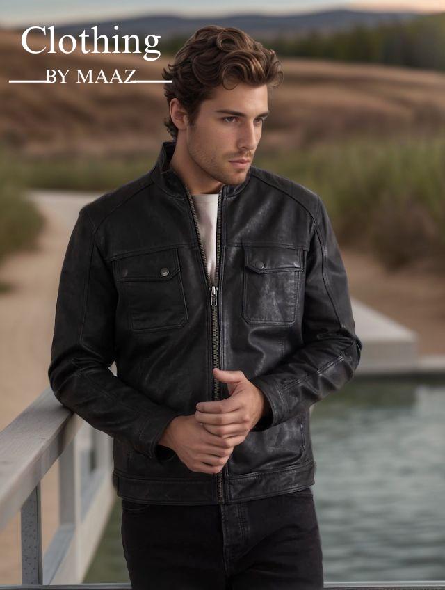 Handmade Men Lakeland Leather Black Warwick Jacket | Handmade Military Style | Men's Outerwear| Clothing By Maaz