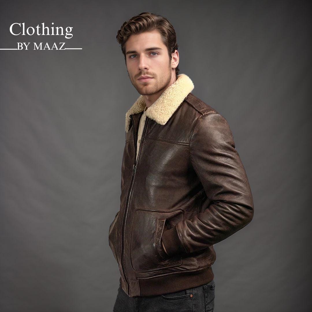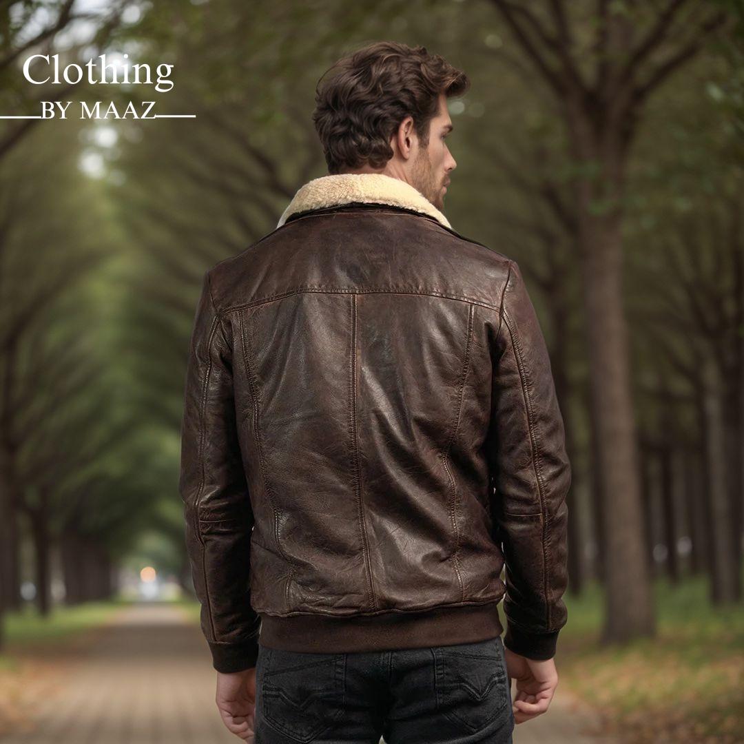 Handmade Men Maverick Leather Brown Bomber Jacket | Handmade Military Style | Men's Outerwear| Clothing By Maaz