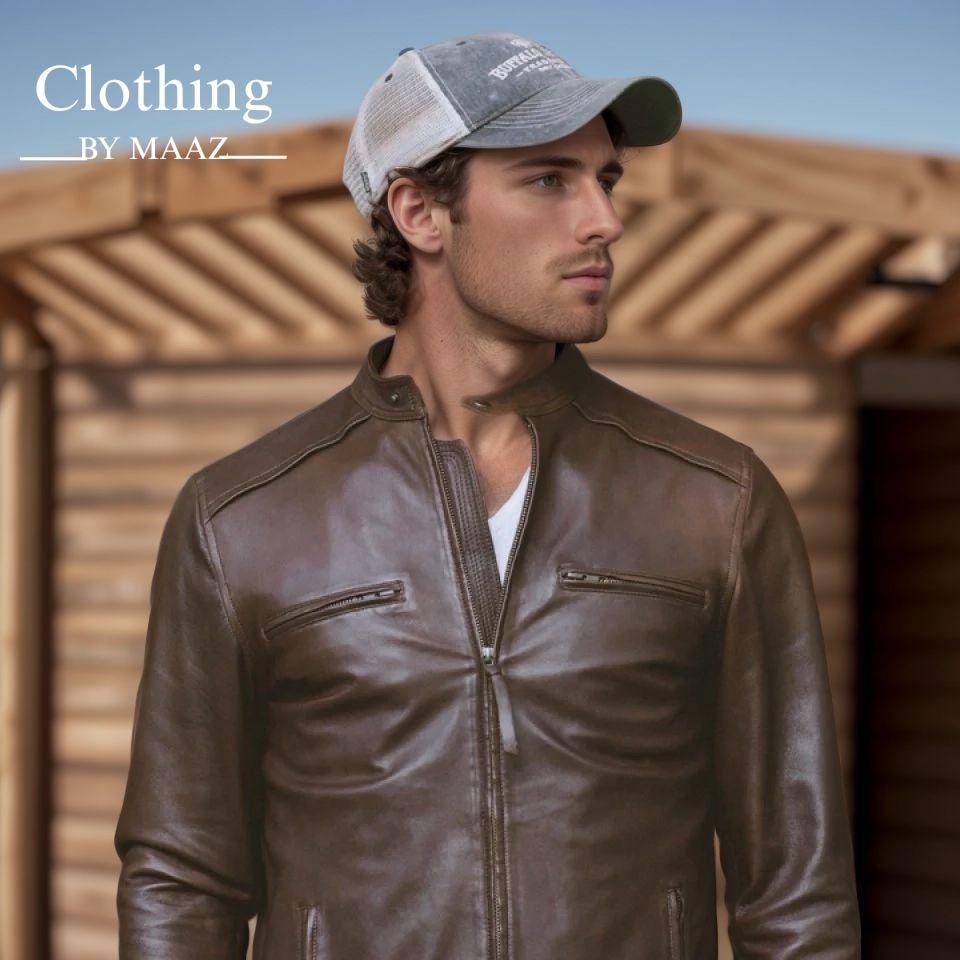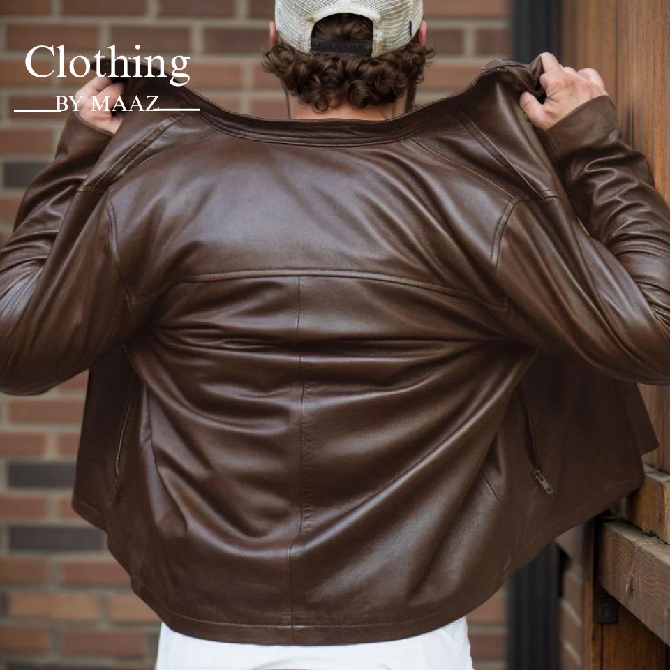 Handmade Men Thompson Leather Brown Moto Jacket | Handmade Military Style | Men's Outerwear| Clothing By Maaz