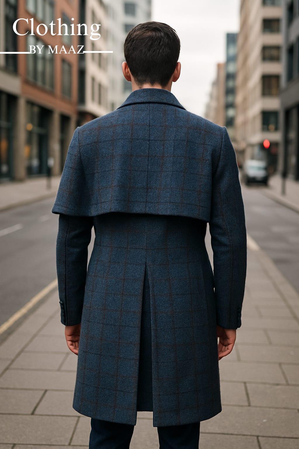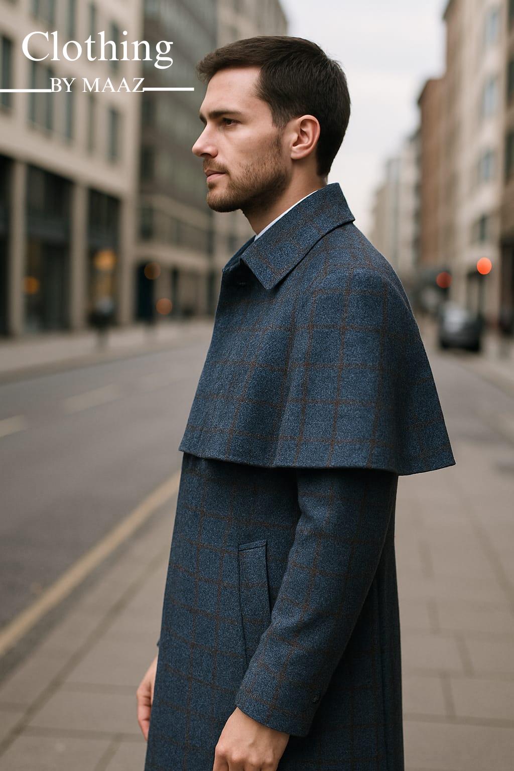 Handmade Men's Long Dark Grey Wool Cape Coat | Duster Coat For Regency Lovers | Clothing By Maaz