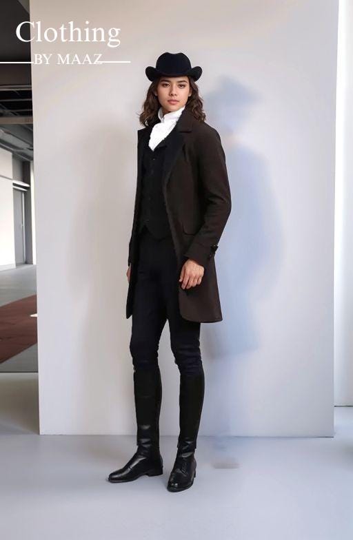 Custom Fit Style: Tailored to provide a sharp, flattering silhouette that enhances your appearance. The fit is designed to reflect the elegance of the Regency era.