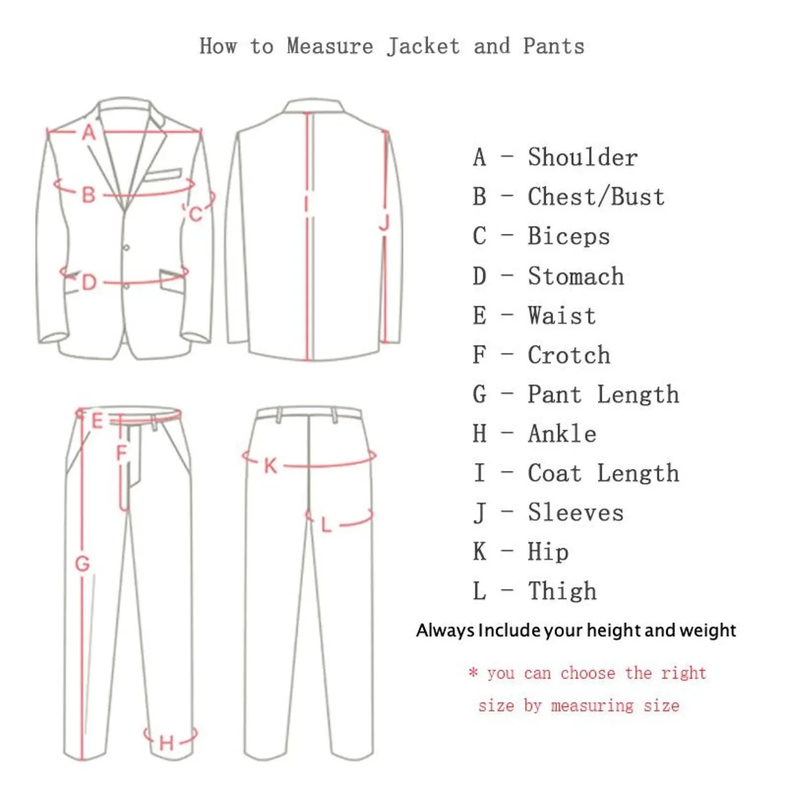 If you're unsure about your size or want a perfectly tailored suit, providing your body measurements in inches is the best way to ensure a flawless fit. If you’re still unsure about measuring, feel free to ask for further guidance! Once we have your measurements, we’ll craft a bespoke suit tailored specifically for you.