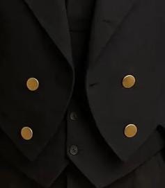 This Regency coat features a structured, double-breasted front with distinctive wide lapels and a fitted waistline, creating a flattering silhouette that echoes the style of gentlemen. The coat is tailored with precision, with professionally stitched seams that ensure durability and a refined finish. Long, folded cuffs and a crisp, high-cut tail add to its authenticity, making this piece a must-have for anyone looking to embody the Regency aesthetic.