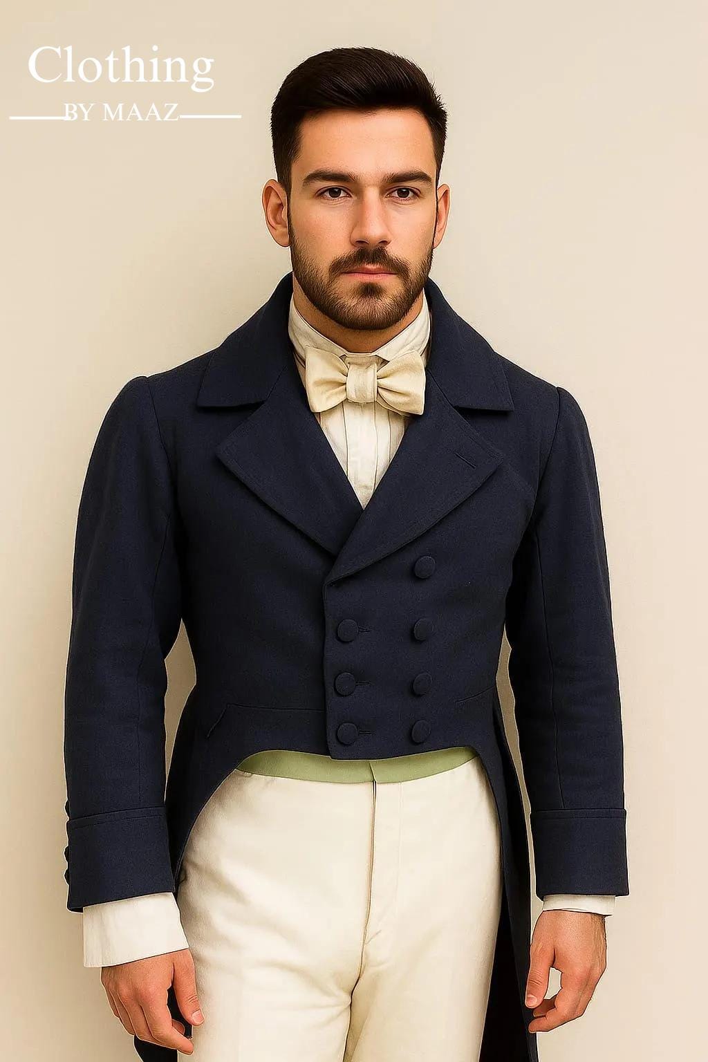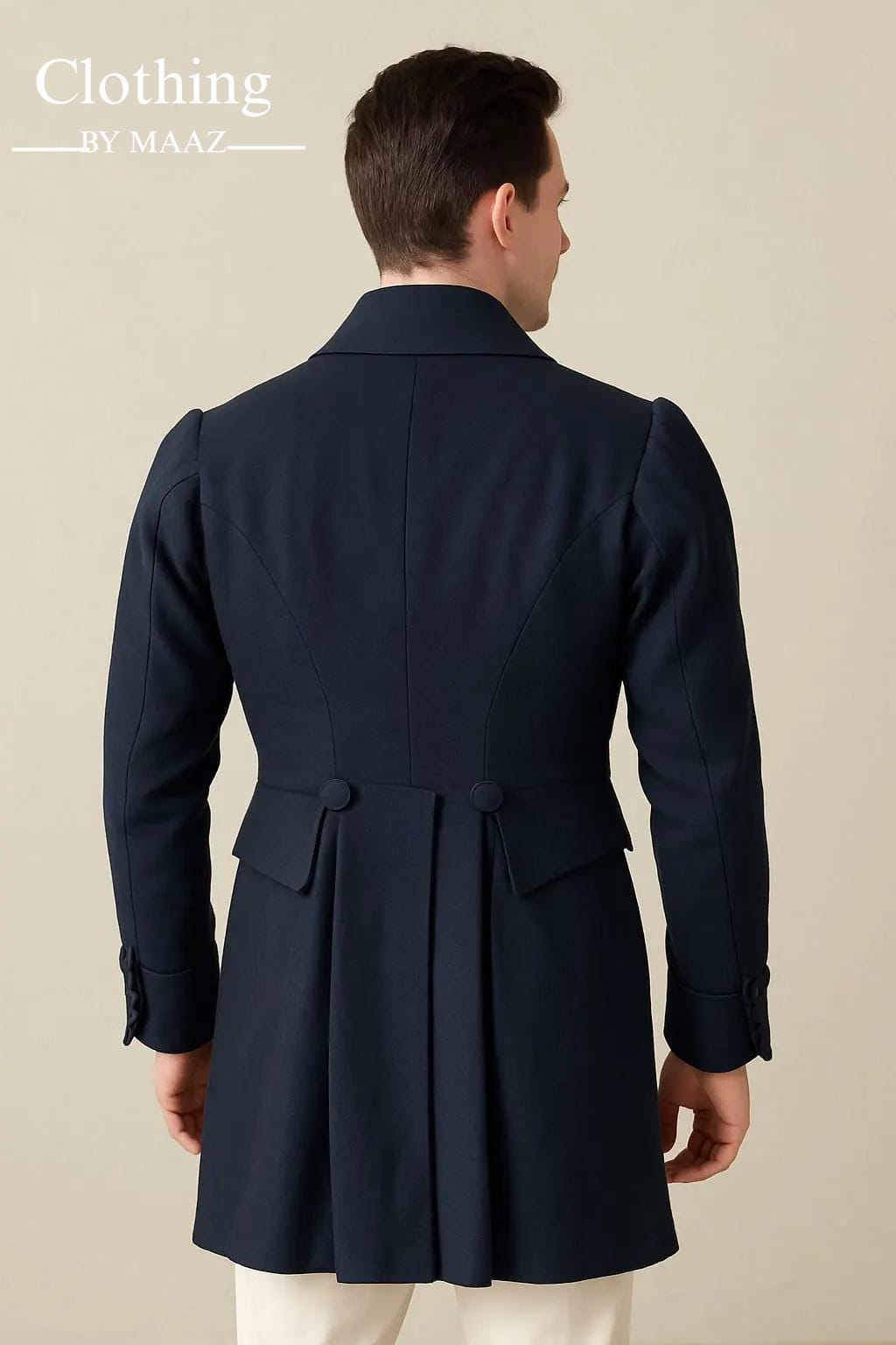 Handmade Men's Regency Navy Blue Wool Tailcoat,Historical Double Breasted coat| Men's Regency Complete Outfit, 18th century Clothing By Maaz