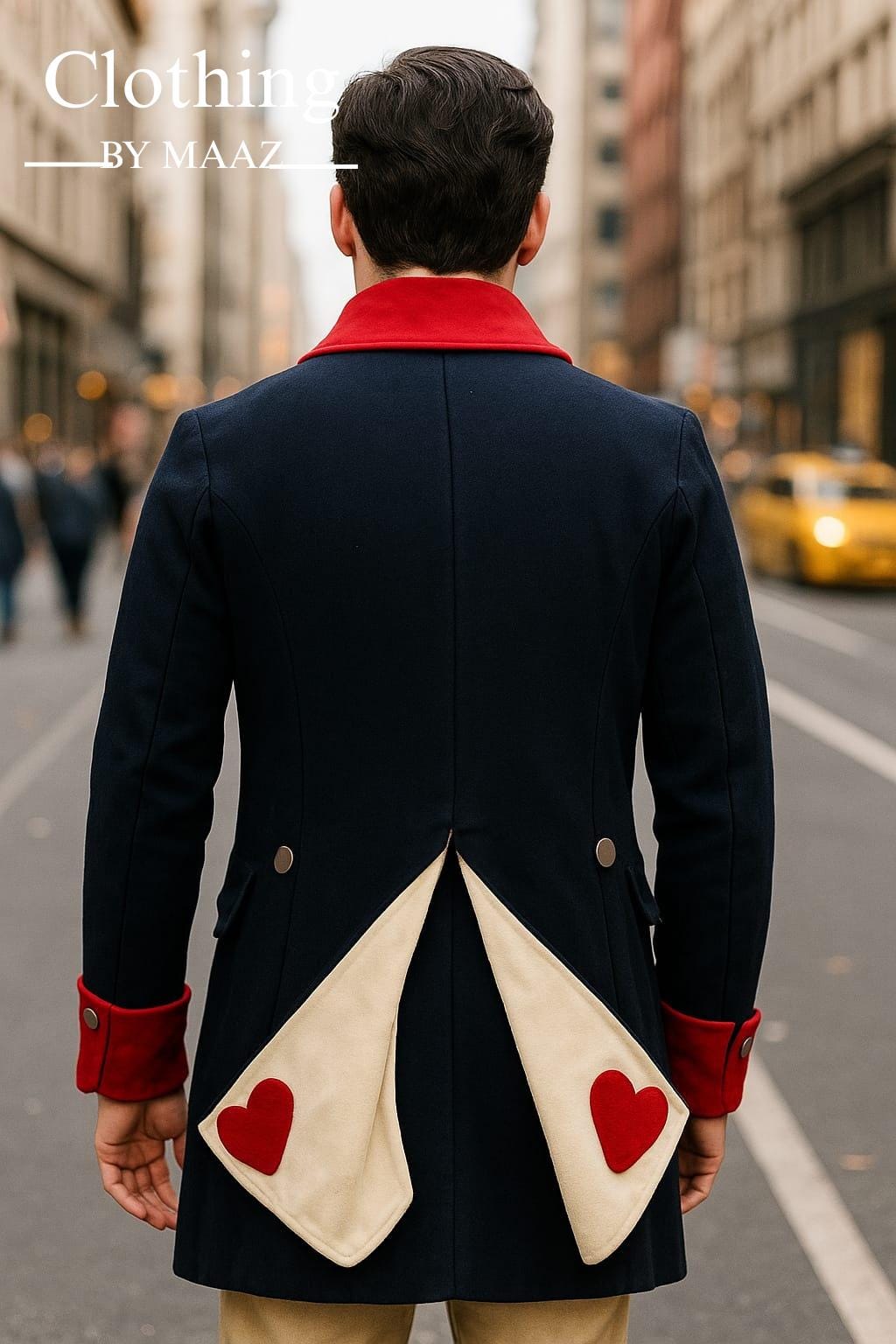 The Men's Napoleonic Blue with Red Hussar Jacket with gold Braiding is a masterpiece of design, blending the grandeur of historical military attire with modern sophistication. Featuring elaborate gold braiding, this jacket showcases intricate patterns that highlight the chest, sleeves, and back, creating a bold and luxurious aesthetic. The tailored fit ensures a sharp, structured silhouette, enhancing the wearer's posture and exuding an air of authority and elegance.