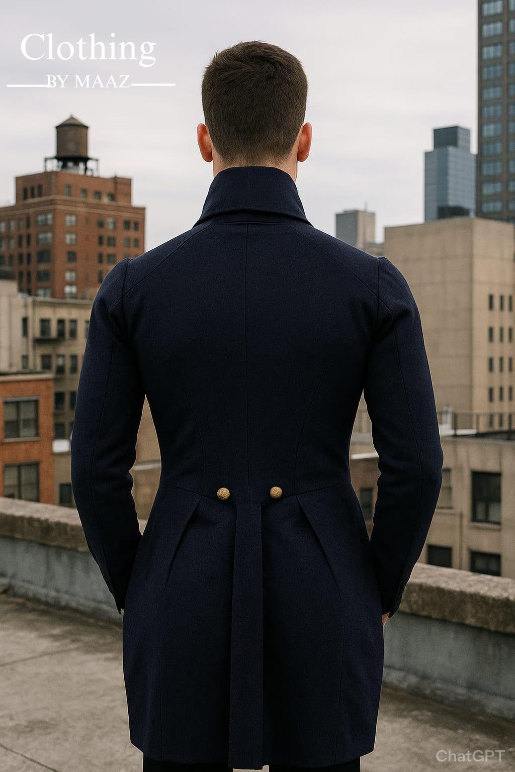Handmade Men's Regency Navy Wool Tailcoat: British Wedding Outfit