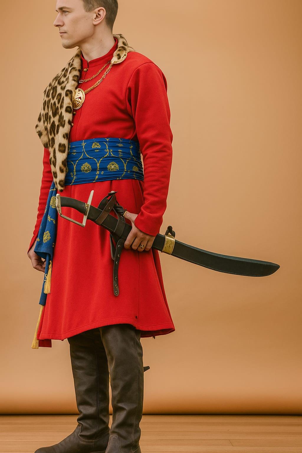 Vibrant Red Fabric – A bold, traditional color often associated with Cossack military dress.