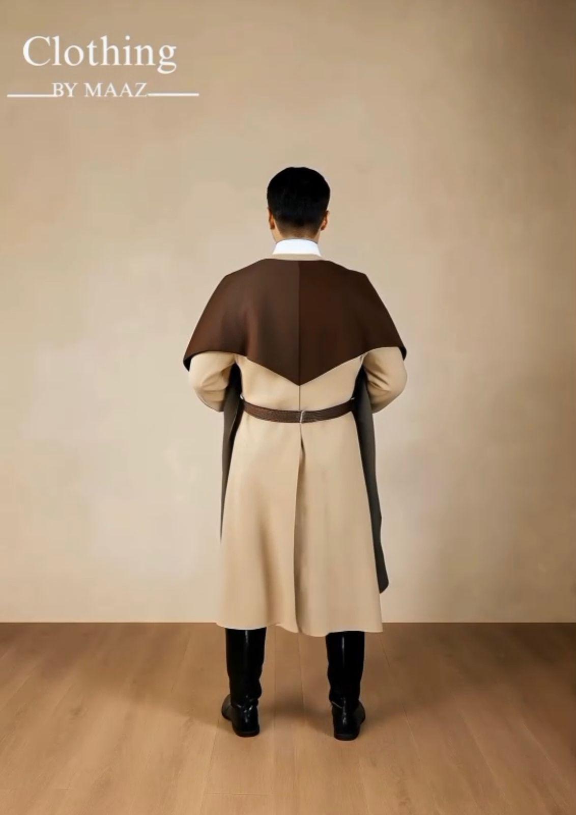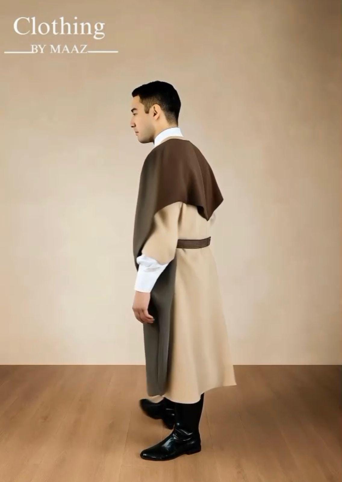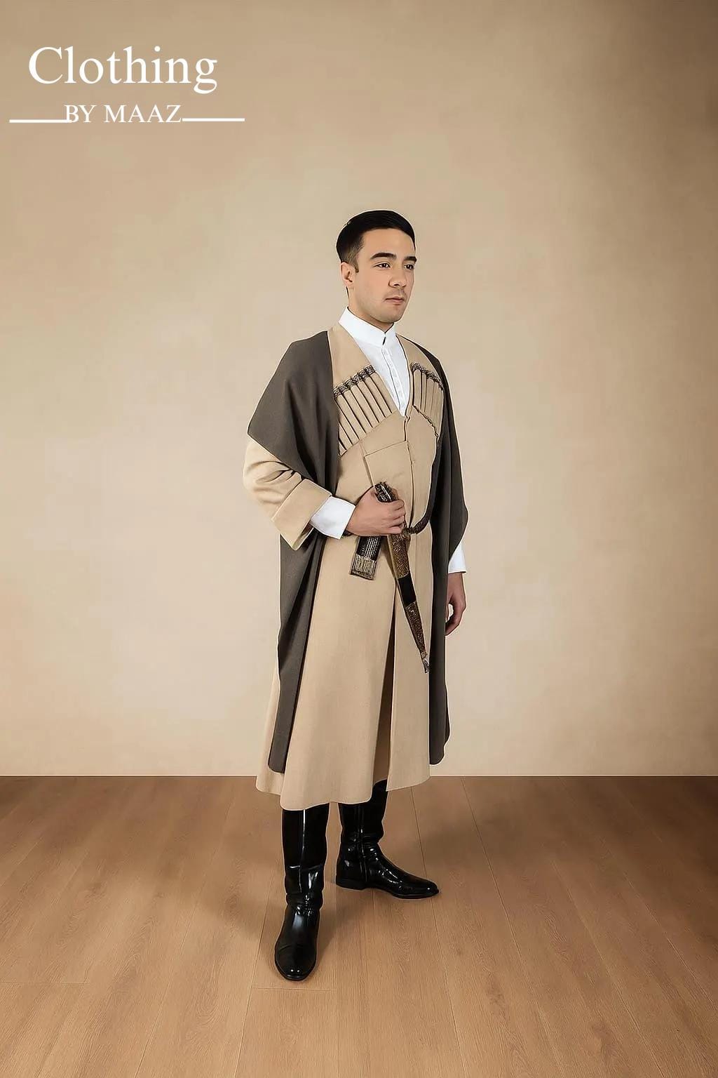 Men's Great Off White Chokha 5 Georgian Clothing Circassian Cossack Dance coat,Men Long Cossack Coat, Cossack Wool Russain War Long Coat,CBM