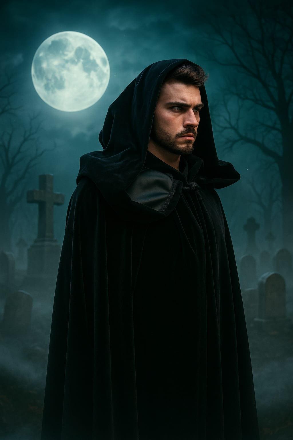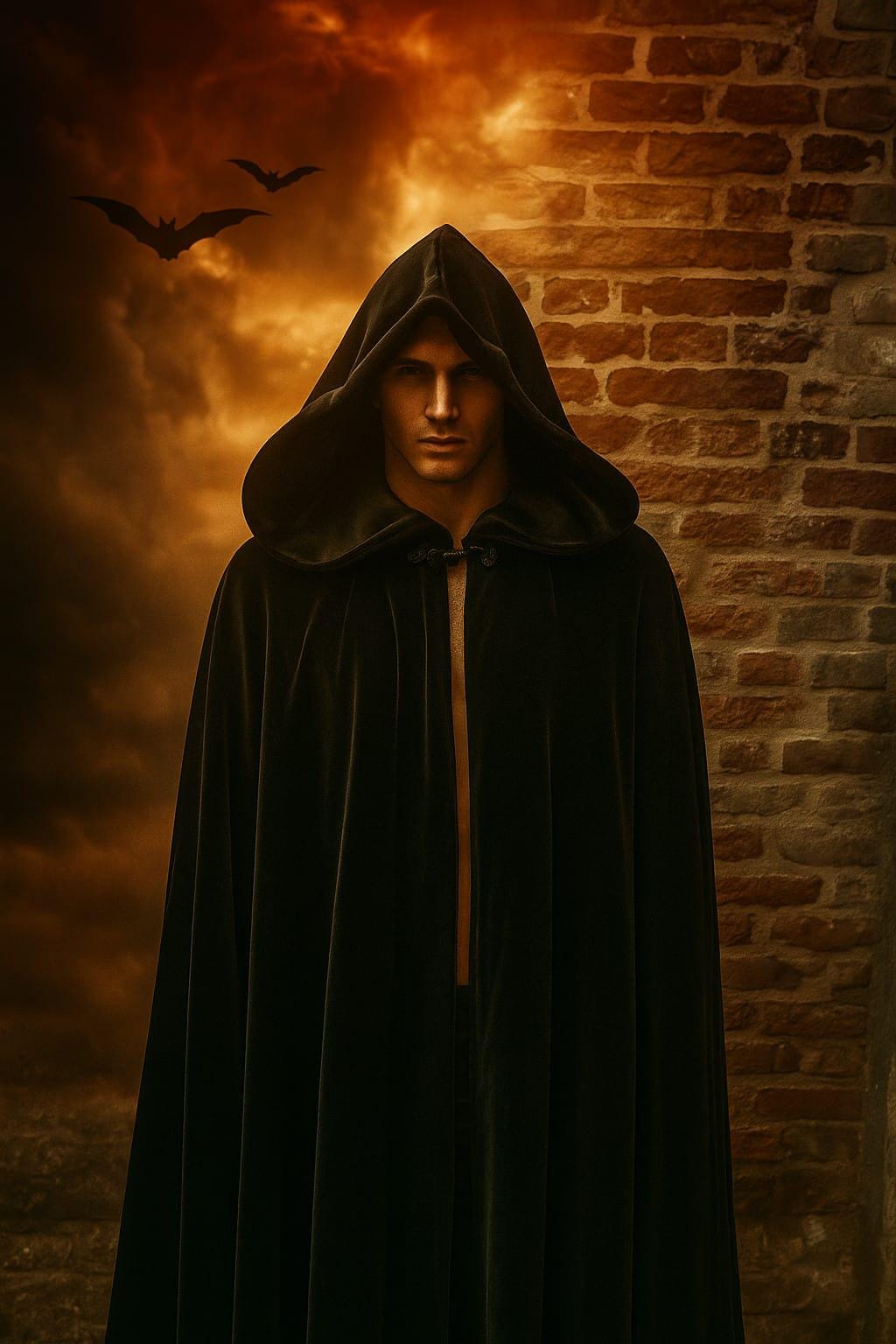 Black Velvet Hooded Cloak, Halloween Costume Cape