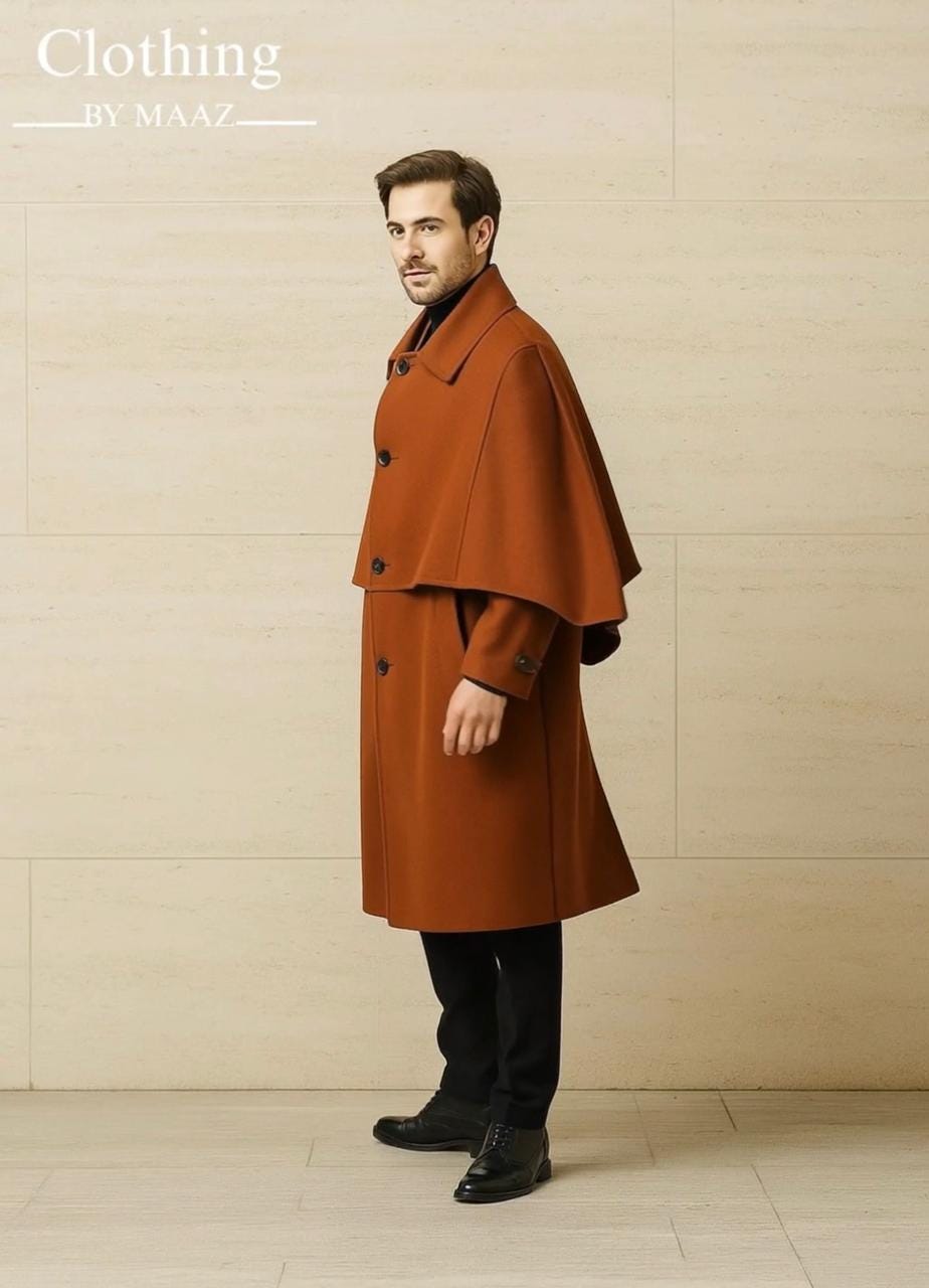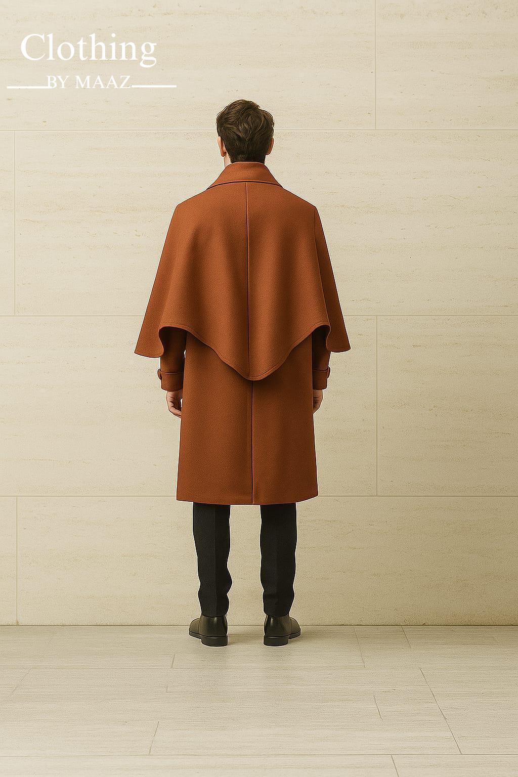 Men's Brown wool cape coat, Men's inverness wool coat, Men's duster coat , Winter Outerwear Coat, Clothing By Maaz