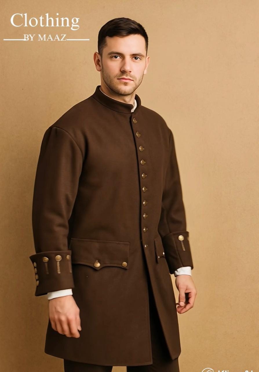Men's Dark Brown 18th Century Frock Coat - Perfect Christmas or Winter Outerwear , Clothing By Maaz