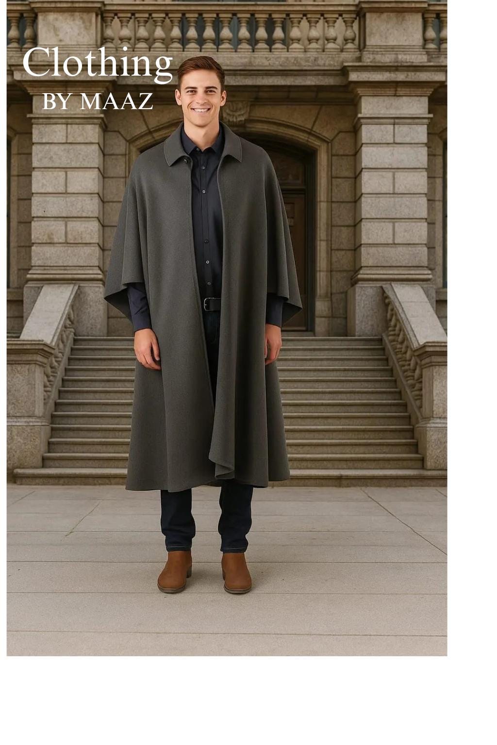This Men Classic Wool Hooded Cape Coat is the perfect marriage of timeless and modern style, designed to keep you warm while making a striking fashion statement. Ideal for anyone looking to invest in a long-lasting, versatile outerwear piece.
