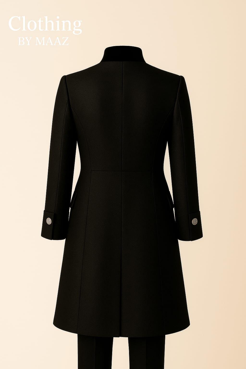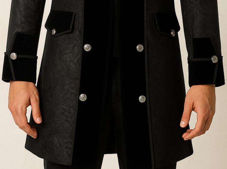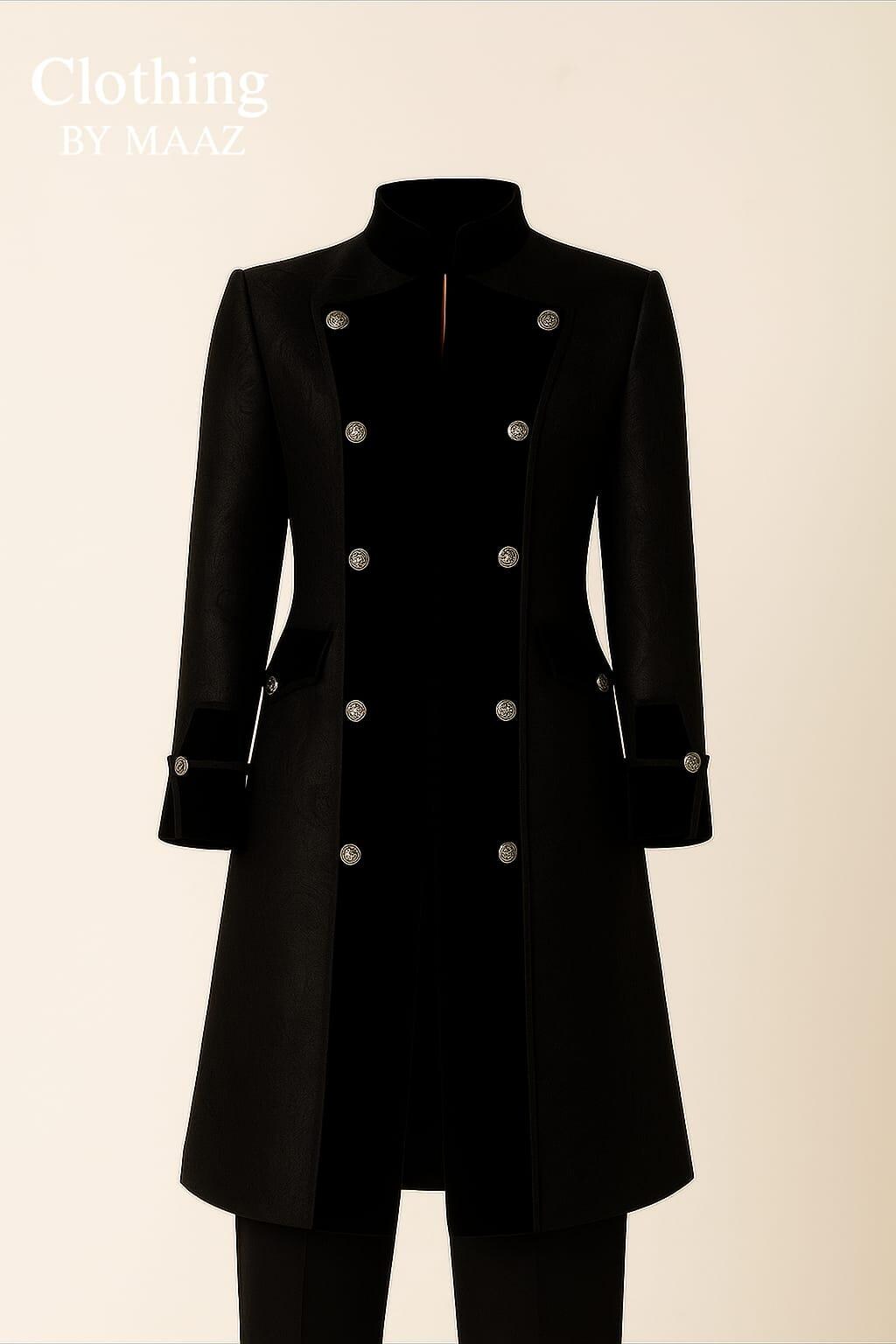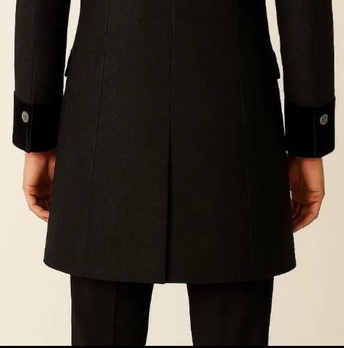 Regency period with this custom-made, Inspired BLACK coat. Drawing from British patterns and the iconic styles seen in this exquisite coat merges historical fashion with meticulous craftsmanship. Ideal for fans of period attire, military reenactors, or admirers of British heritage clothing