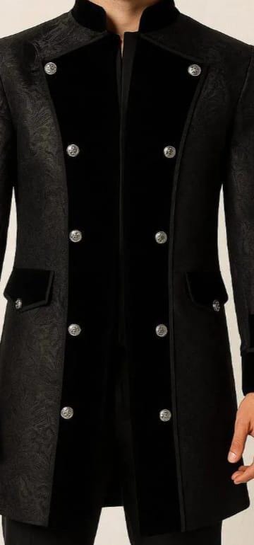 Crafted from 100% premium ( Cotton , Wool , Velvet) the coat features a rich black hue that exudes warmth and character. For those seeking a unique look, custom color options are available, allowing for a personalized touch to suit your style or event. This coat is made to measure, ensuring a tailored fit that flatters the wearer while maintaining the classic Regency silhouette.