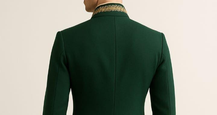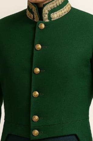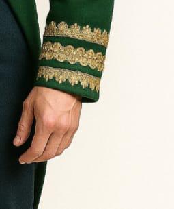 Color: Rich dark green with detailed gold embroidery