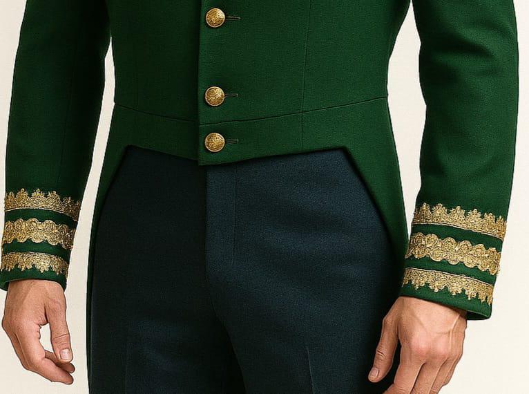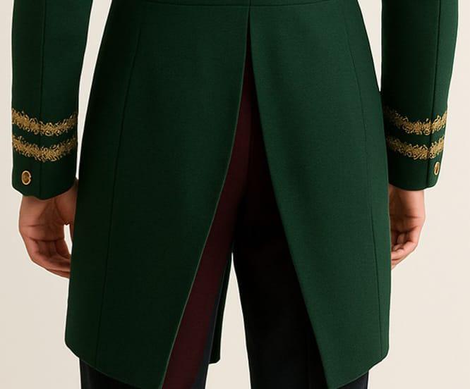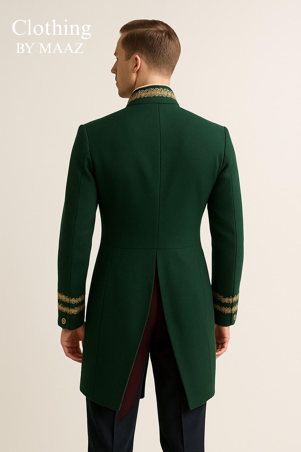 Vintage Green Military Tailored Coat with Gold Embroidery - Victorian Inspired Men’s Jacket - Elegant Officer Uniform - Classic Formal Wear for Men - Stylish Green Coat for Special Occasions