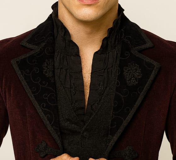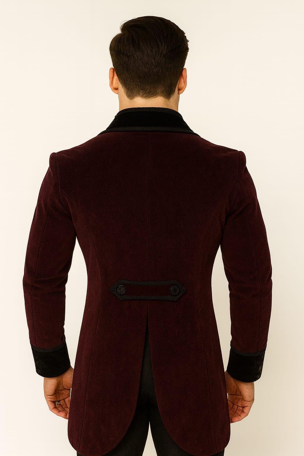 Upgrade your wardrobe with this luxurious Victorian-style men’s velvet tailcoat, designed for those who appreciate timeless elegance, gothic fashion, and premium craftsmanship. Featuring a deep burgundy velvet exterior, intricate black embroidered lapels, and a refined long-tail silhouette, this coat delivers the perfect blend of Victorian sophistication and modern flair.