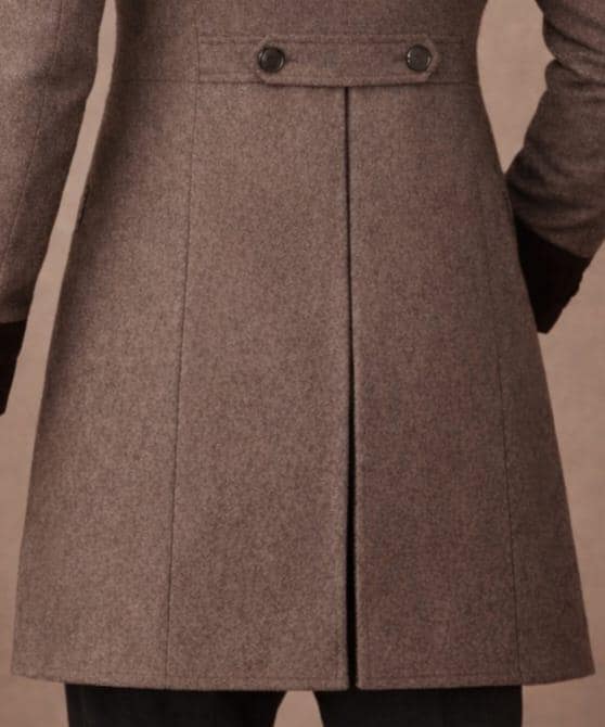 Length: Long coat with classic tail back