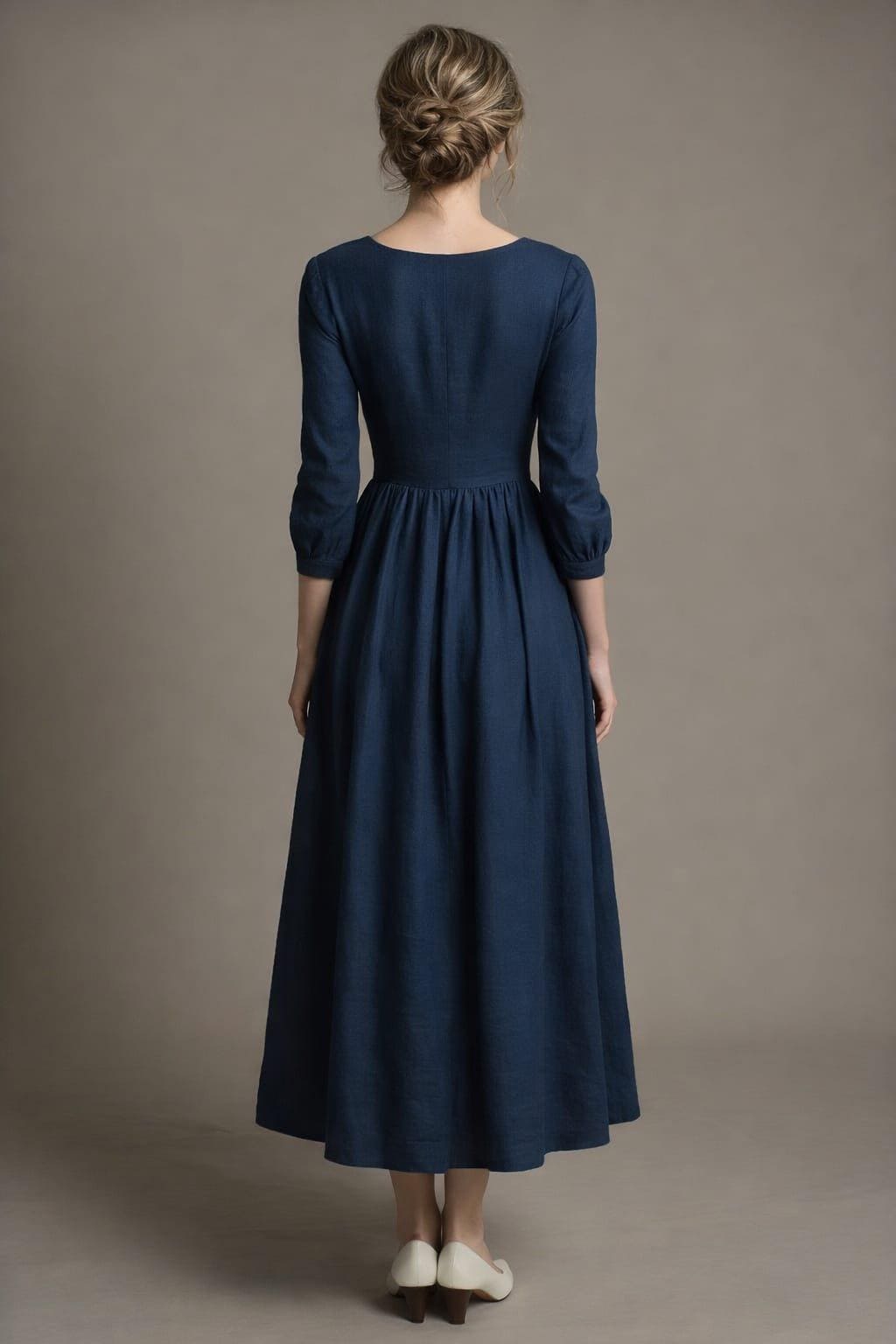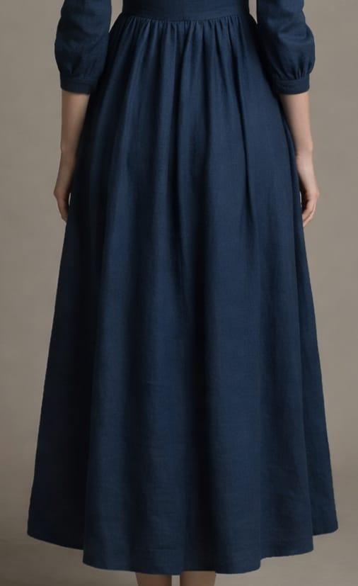 Edwardian Blue Dress for Women | Vintage Prairie Dress | Cottagecore Maxi Dress | Historical Linen Dress | Modest Long Dress