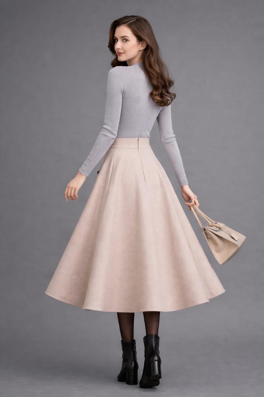 Vintage Inspired Wool Midi Skirt for Women, High Waist A-Line Skirt, Victorian Style Winter Skirt, Elegant Retro Fashion