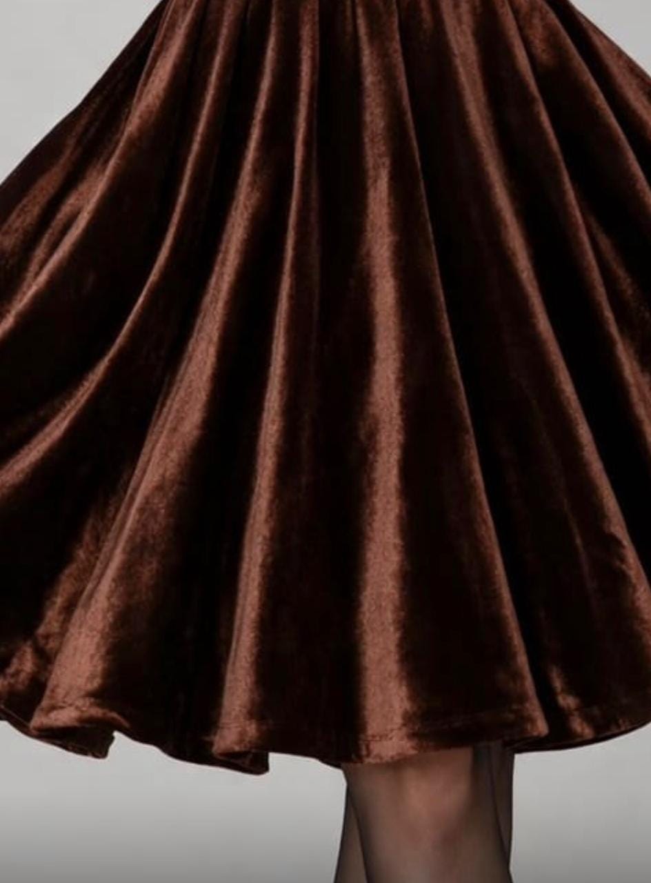 Step into timeless elegance with this Women’s Brown Velvet Skirt, designed for comfort, style, and sophistication. Crafted from premium soft velvet fabric, this high-waist flared midi skirt creates a flattering silhouette perfect for vintage lovers and modern fashionistas alike.