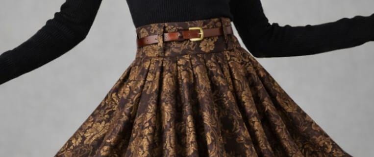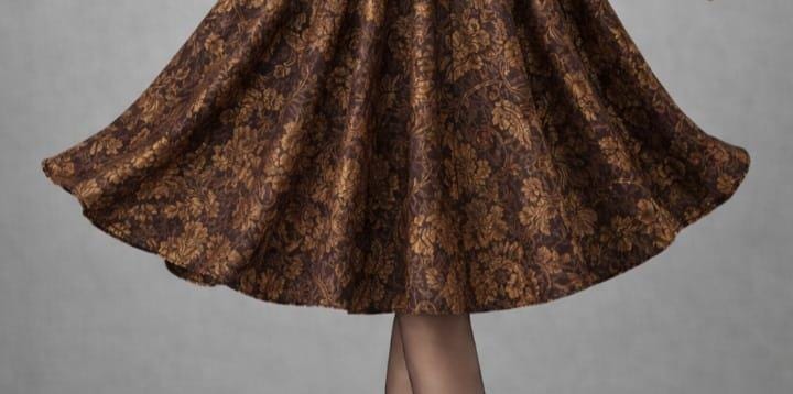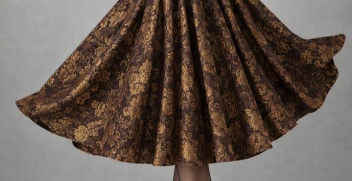 Step into timeless elegance with this vintage-inspired brown brocade midi skirt, designed for women who love classic Victorian and retro fashion. Crafted with a luxurious floral jacquard pattern, this high-waisted flared skirt creates a graceful silhouette that flatters every figure.