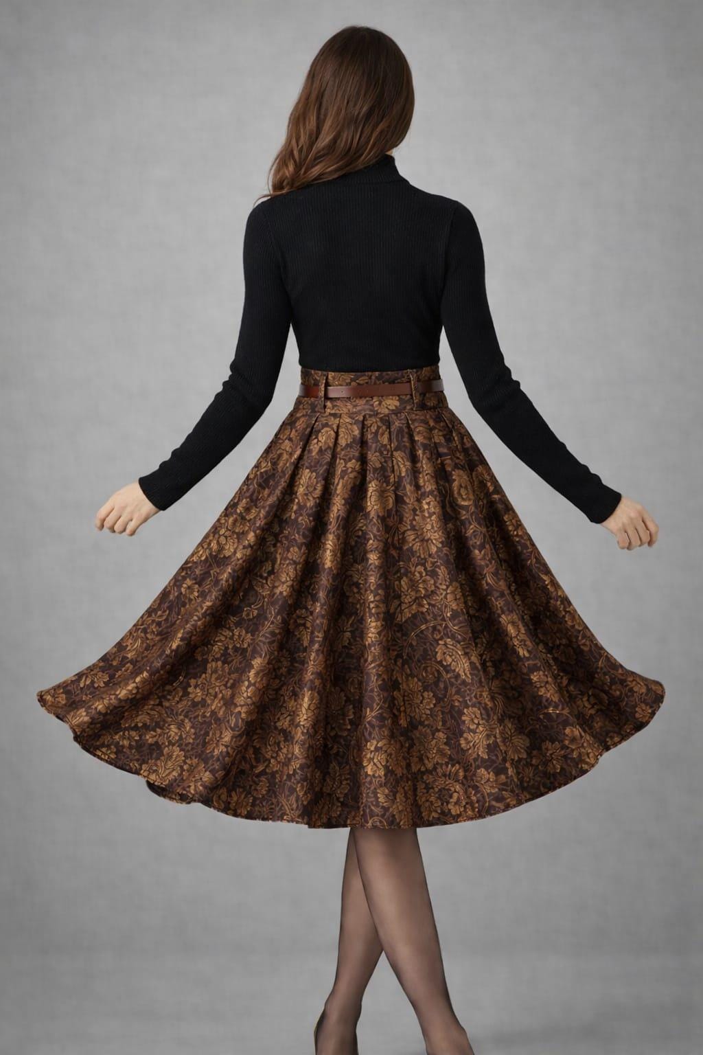 Perfect for fall and winter outfits, this skirt pairs beautifully with sweaters, turtlenecks, blouses, or boots. Whether you’re dressing for a retro party, office wear, holiday event, or everyday vintage style, this elegant skirt brings sophistication and charm to any look.