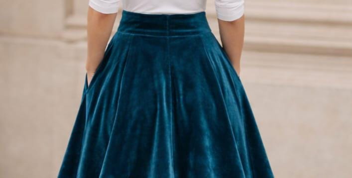 The flowy midi length, functional side pockets, and rich velvet texture make it an ideal choice for women who value both style and practicality. Inspired by vintage European fashion, this skirt is a must-have statement piece for any elegant wardrobe.