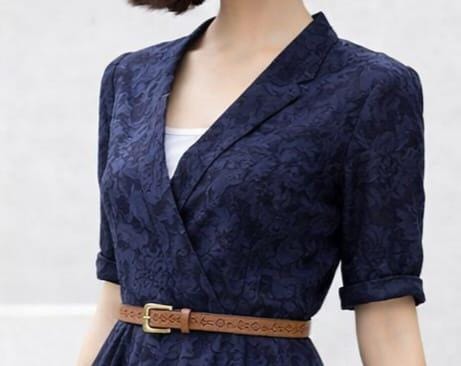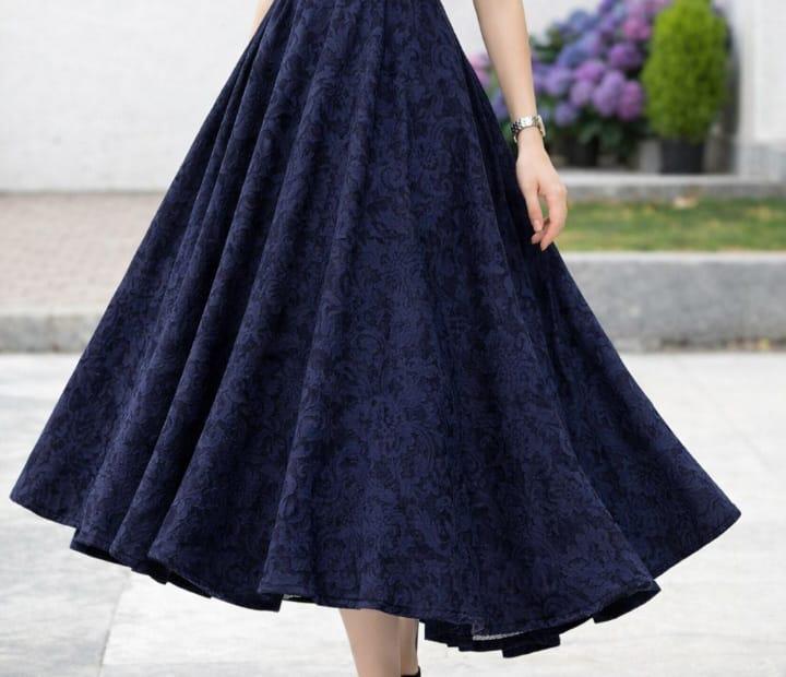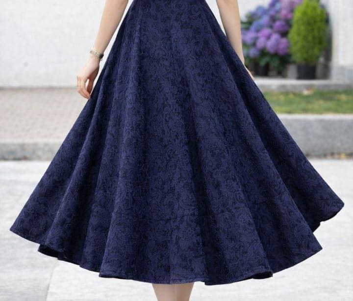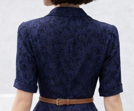 Elevate your wardrobe with this luxurious navy blue brocade midi dress, designed for women who appreciate timeless elegance and refined craftsmanship. Crafted from richly textured brocade fabric, this dress features a classic fit and flare silhouette that flatters the waist and flows gracefully with every step.