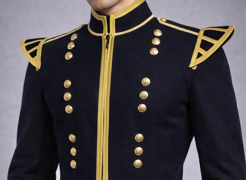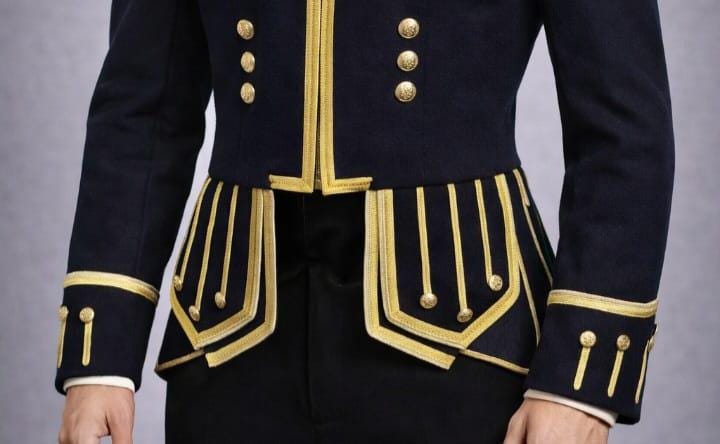 Command attention with this Napoleonic-inspired military officer jacket, designed for men who appreciate historical elegance, sharp tailoring, and bold statement fashion. Inspired by 19th-century Victorian and Napoleonic uniforms, this jacket features rich gold trim detailing, decorative metal buttons, and structured epaulette shoulders for a powerful, aristocratic silhouette.